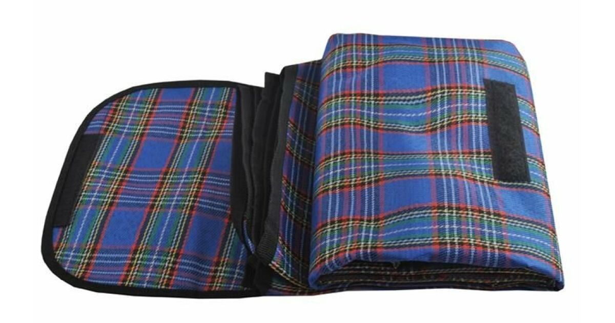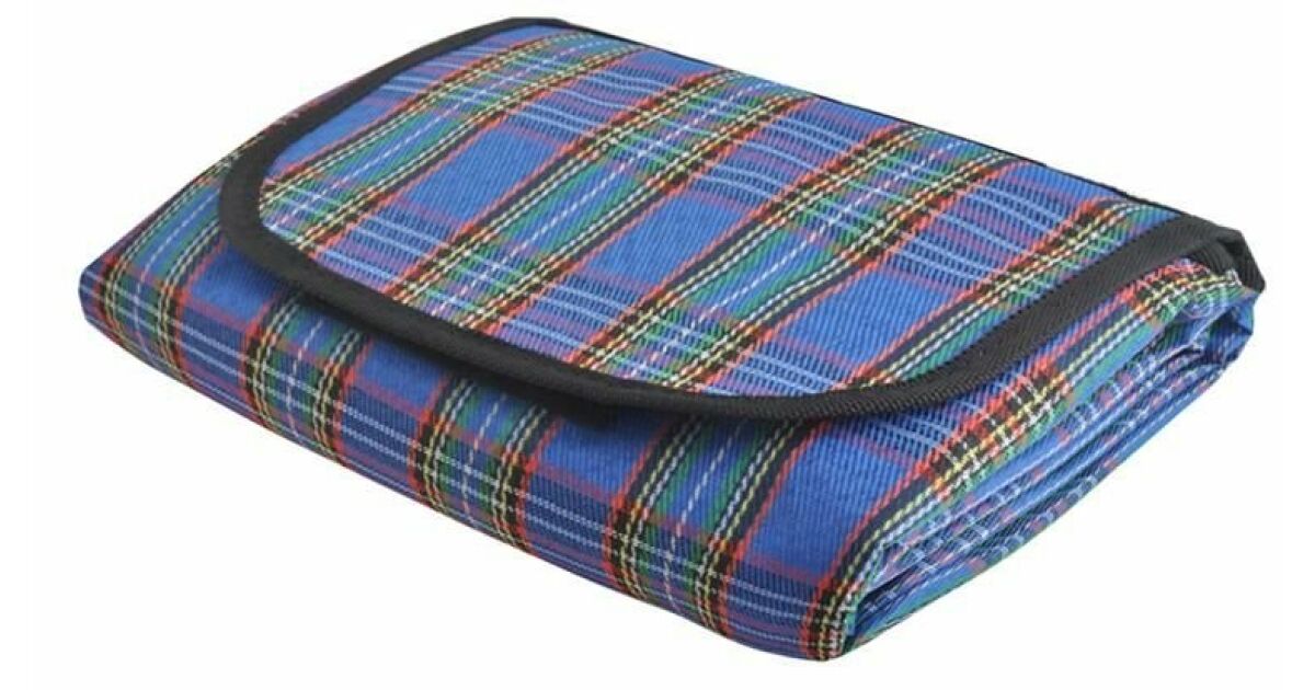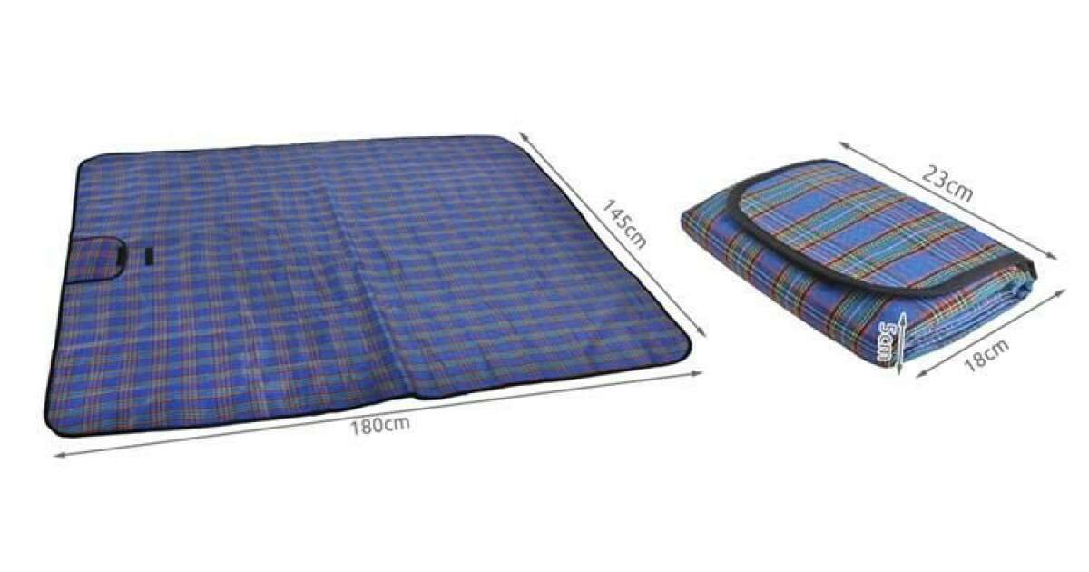 Pătură de Picnic Impermeabilă cu Mânere - Albastru cu Carouri, 180x145 cm 🏖️