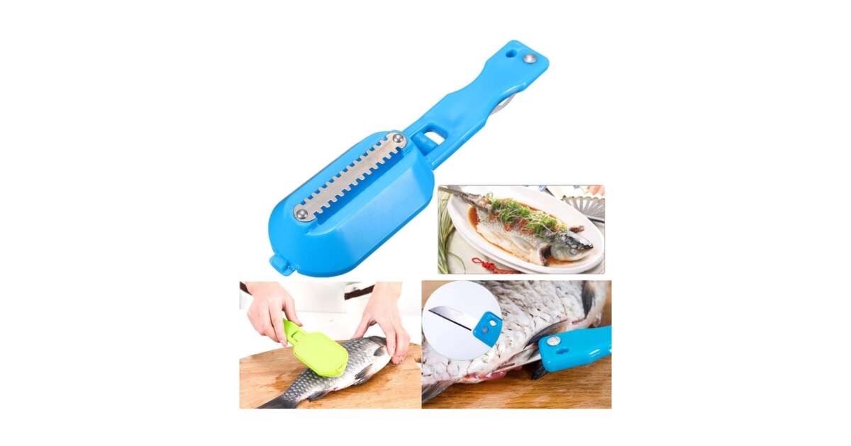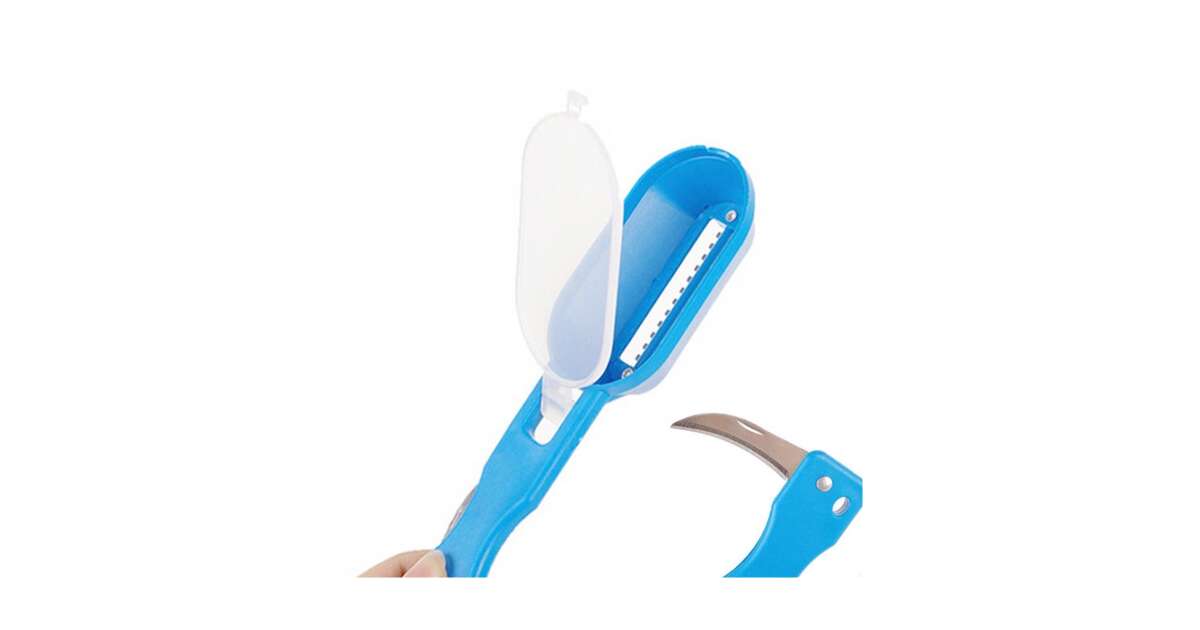 Curatator Peste, Emeszon ®, contine cuva depozitare solzi Peste + mini cutit de Inox incorporat pentru razuire solzi, albastru Descriere