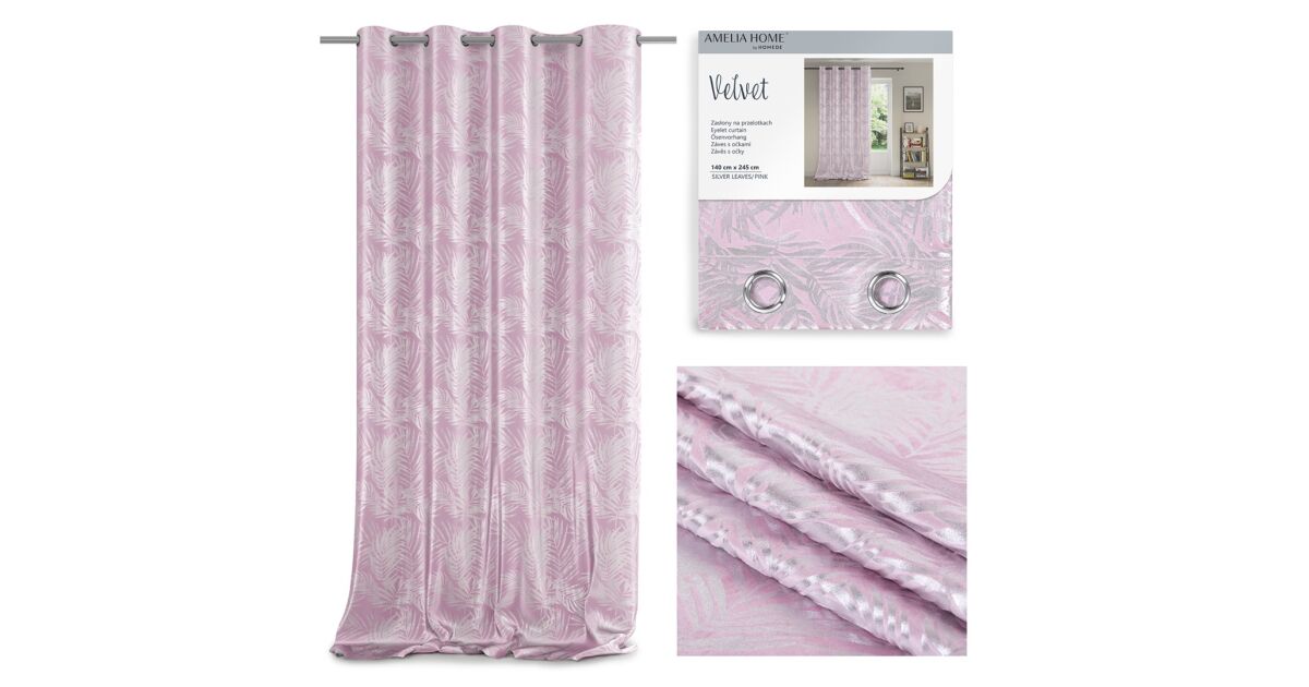 Întunecare perdea SILVERLEAVES pulbere roz imprimat glamour argint catifea 140x245 AmeliaHome Descriere