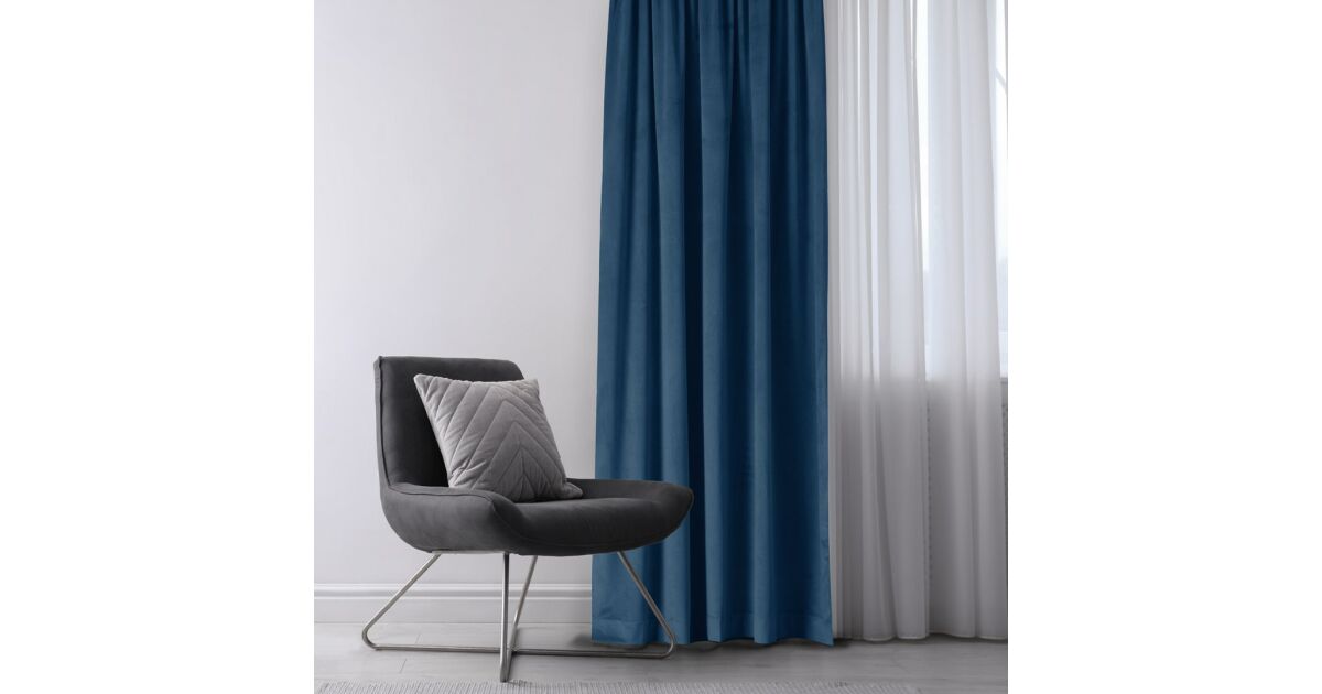 -Perdea de întunecare VILA culoare albastru indigo stil clasic flex 9,5 cm suprapunere dublă catifea 530x225 HOMEDE Descriere