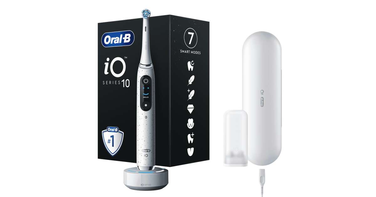 Periuța de dinți electrică Oral-B iO10 cu stație de încărcare inteligentă iO Sense revoluționară îți oferă o experiență personalizată de îngrijire orală. Bucură-te de senzația de curățare profesională în fiecare zi!