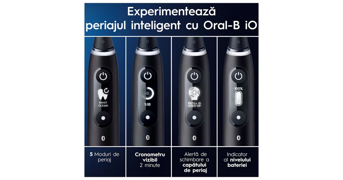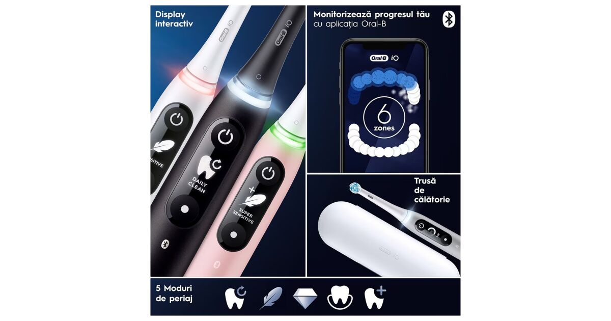 Bucură-te de experiența unui periaj profesional acasă cu periuța de dinți electrică Oral-B iO Series 6! 😊
