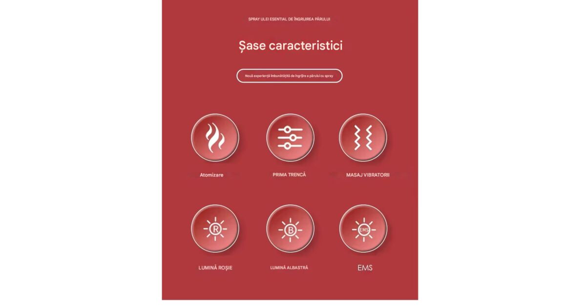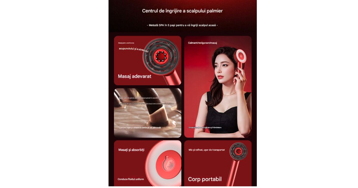 - Aplicator inteligent de ser: Distribuie uniform tratamentele pe scalp.