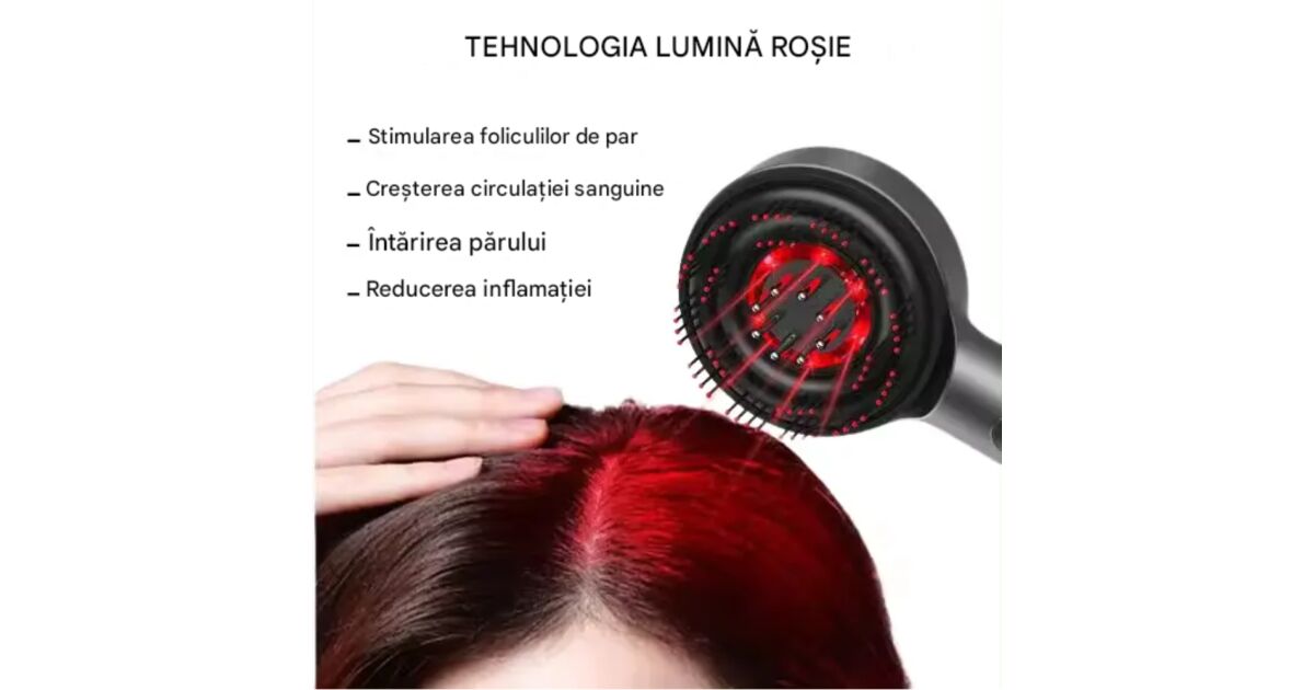 - Cap de masaj cu infraroșu: Stimulează circulația sângelui la nivelul scalpului.
