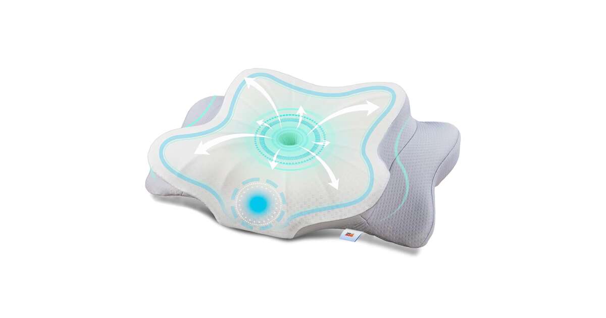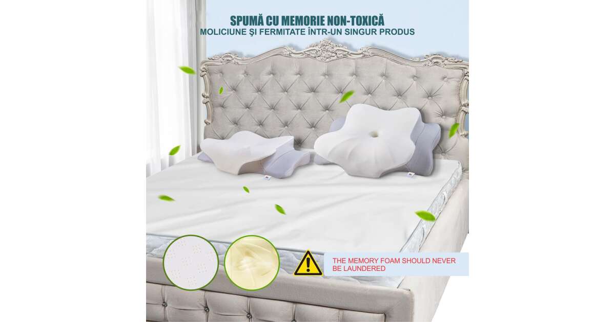 - Design ergonomic: Designul în formă de fluture asigură confort maxim în toate pozițiile de somn (pe spate, lateral, pe burtă).