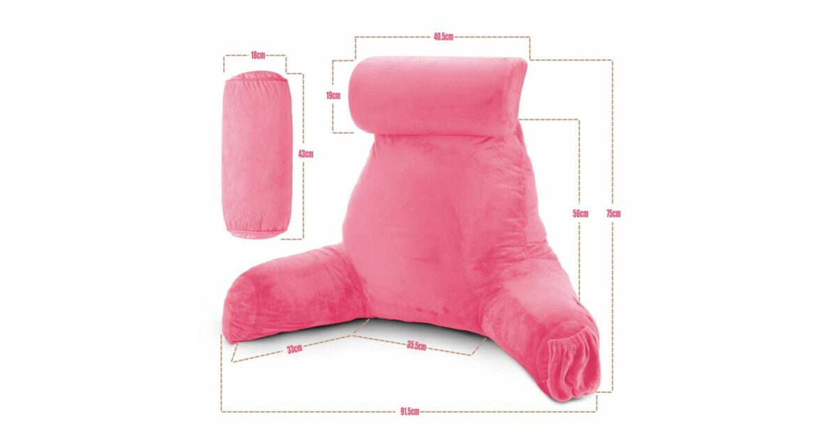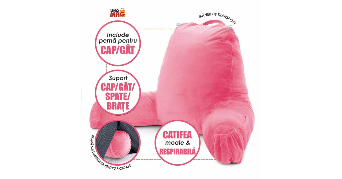Perna pentru Citit cu Cotiere, Suport pentru Cap/Gat Detasabil & Suport pentru Picioare, Linomag®, 2 x Buzunare Laterale, Roz, 91.5x75cm Descriere
