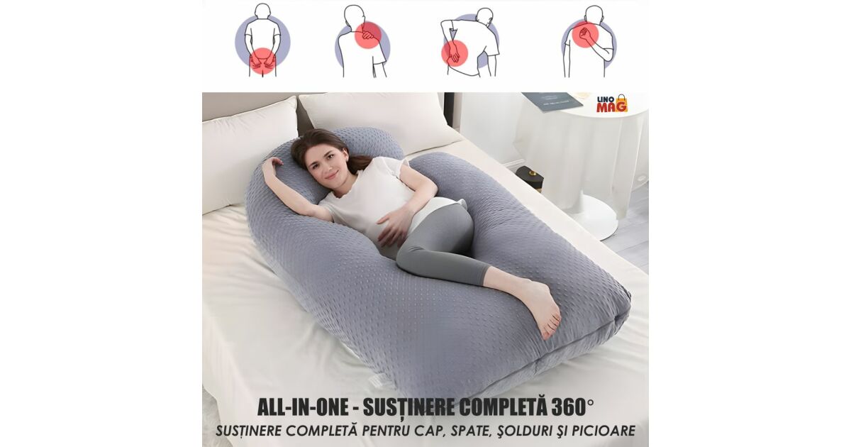 - Confort maxim și suport ergonomic: Proiectată special pentru femeile însărcinate, oferă suport optim pentru cap, gât, spate, șolduri și picioare, reducând disconfortul și oboseala. 😊