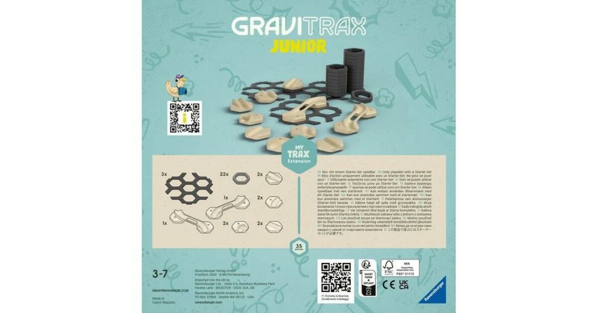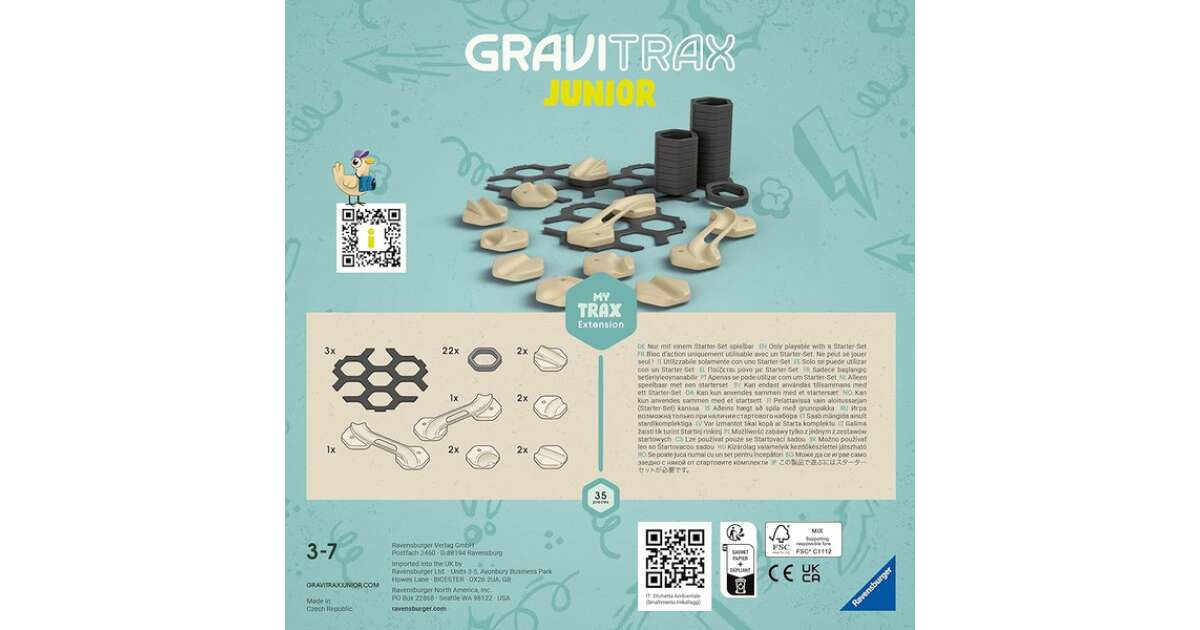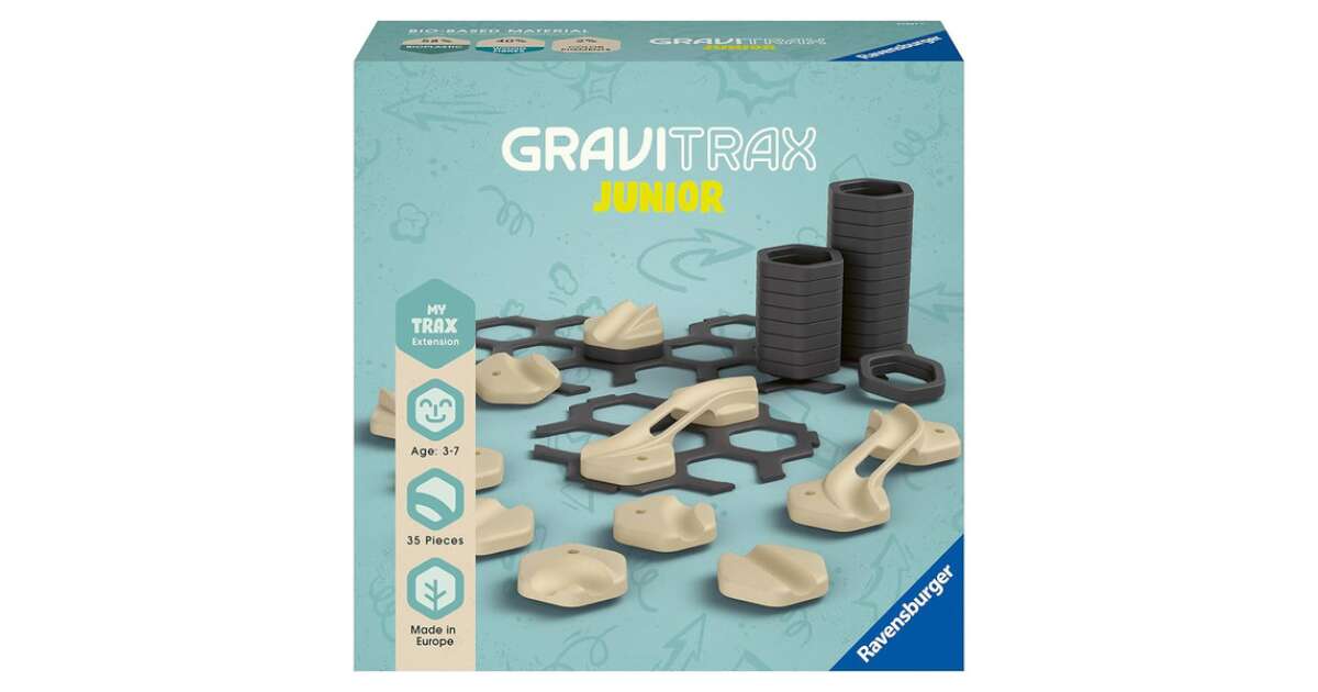 Acest set suplimentar GraviTrax Junior îți oferă o mulțime de oportunități noi pentru a-ți îmbunătăți pista existentă și a o face și mai interesantă! Recomandat de la vârsta de 3 ani, oferă distracție perfectă atât pentru băieți, cât și pentru fete.