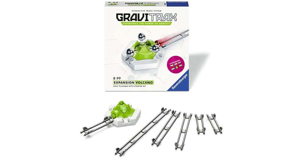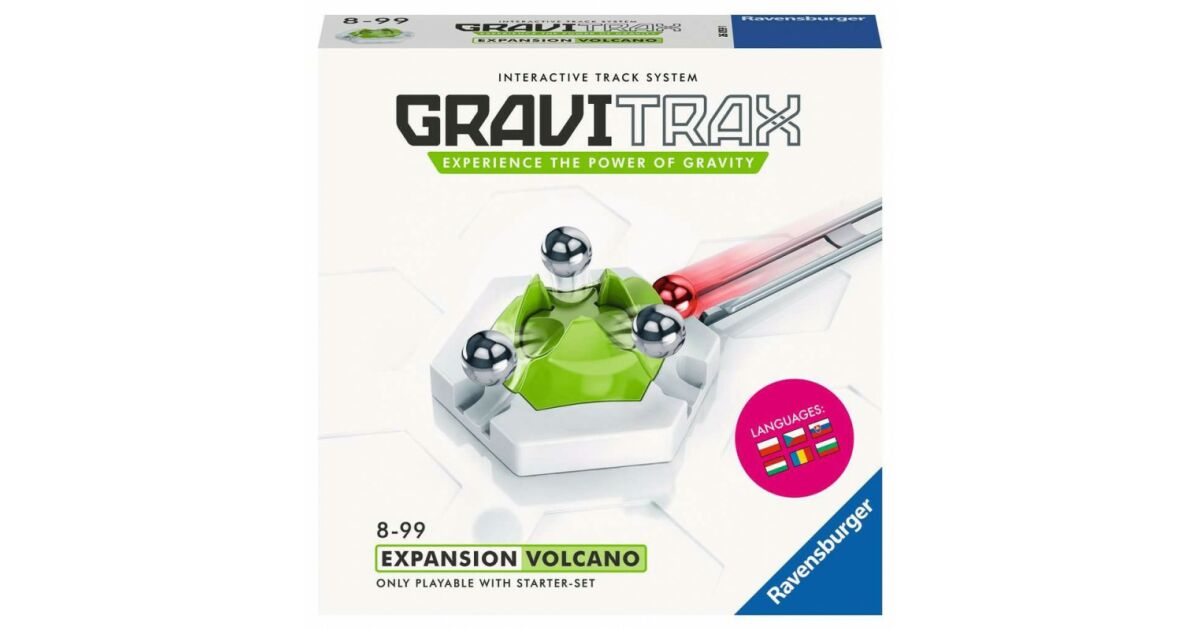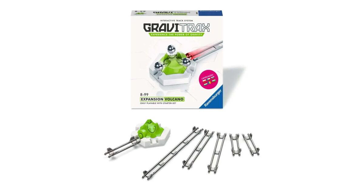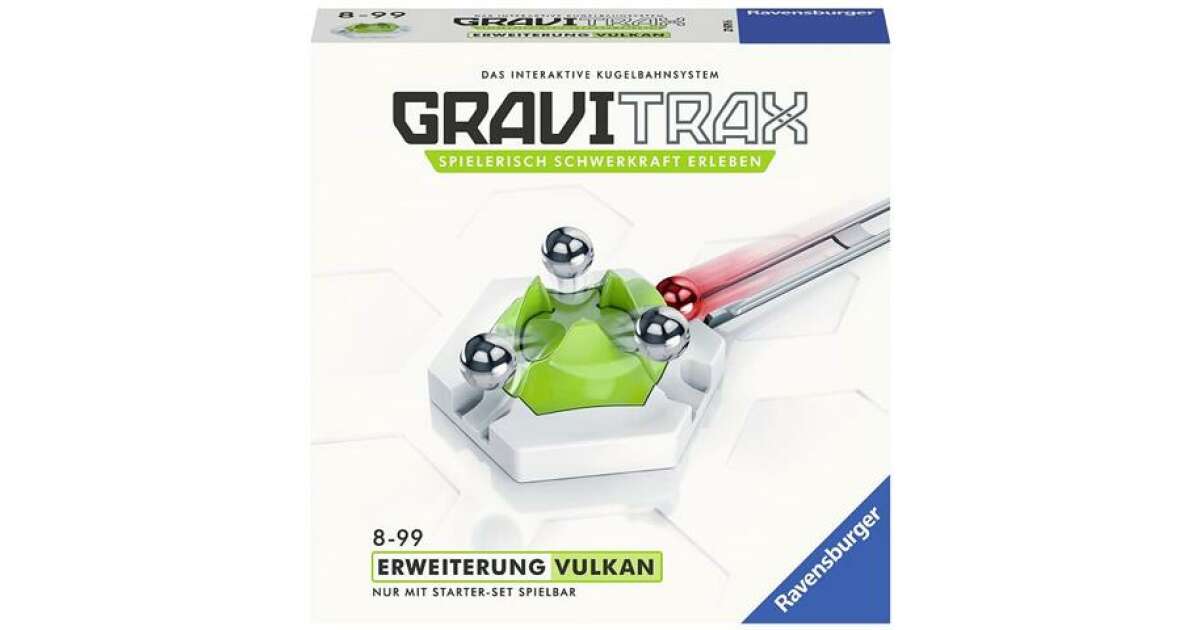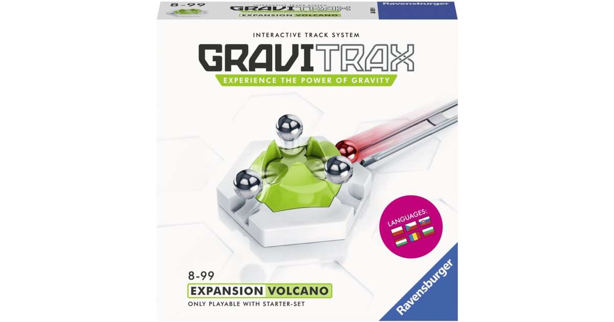 Acest set suplimentar Ravensburger Gravitrax Vulkán aduce și mai multă emoție în construcția traseelor Gravitrax! Modulul vulcan are un mecanism unic: ține trei bile, apoi, când a patra bilă ajunge, le eliberează printr-o simplă apăsare de buton, acestea pornind în viteză pe trei trasee diferite.