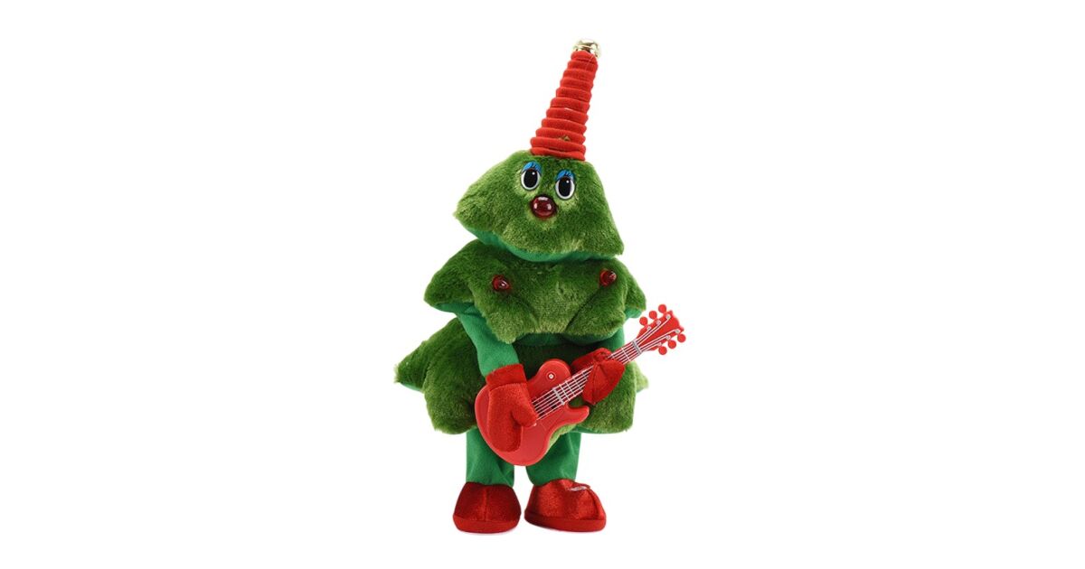 Bradut Dansator si Cantaret, KipHome, Decoratiune de Craciun, Jucarie Interactiva, cu Chitara, cu Lumini, 25 cm Inaltime, Verde Descriere
