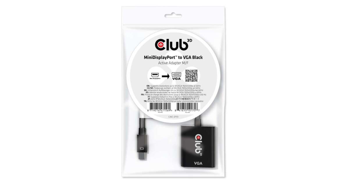 CLUB3D CAC-2113 adaptor pentru cabluri video 0,228 m Mini Displayport VGA Negru (CAC-2113) Descriere