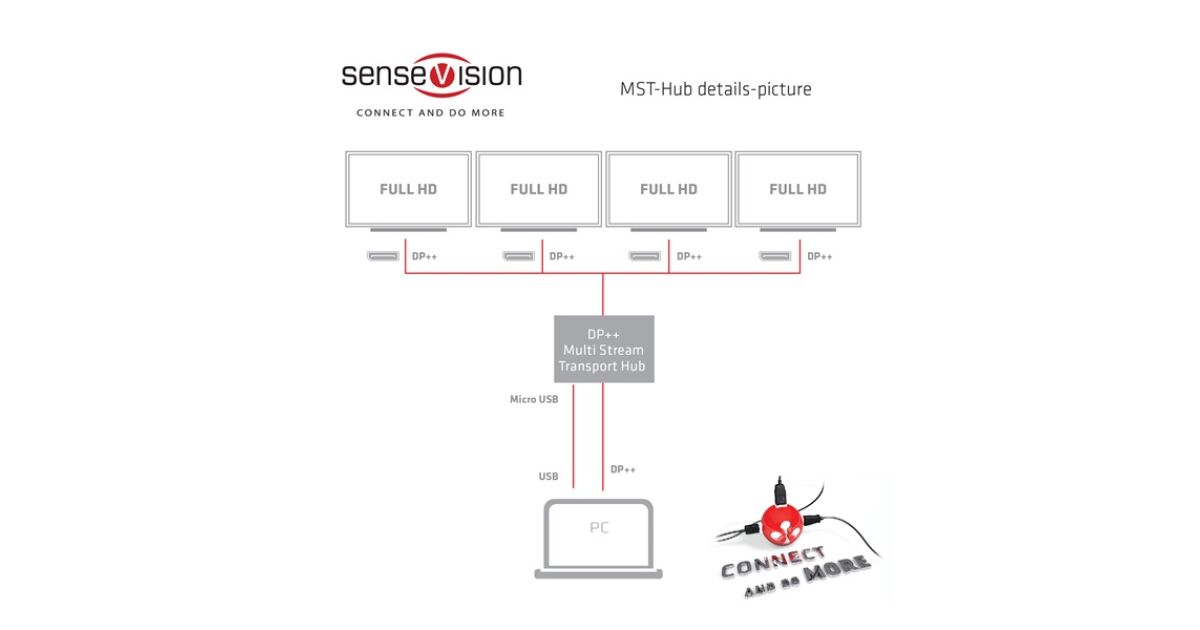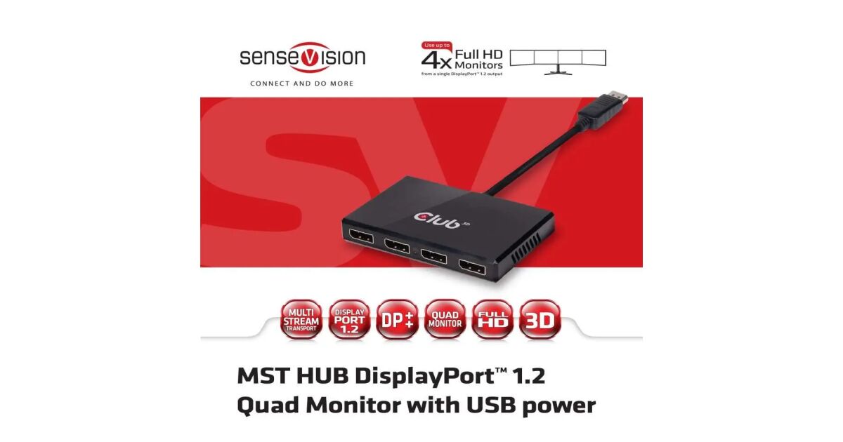 - Club3D Multi Stream Transport (MST) Hub DisplayPort™ 1.2 Quad Monitor USB Powered