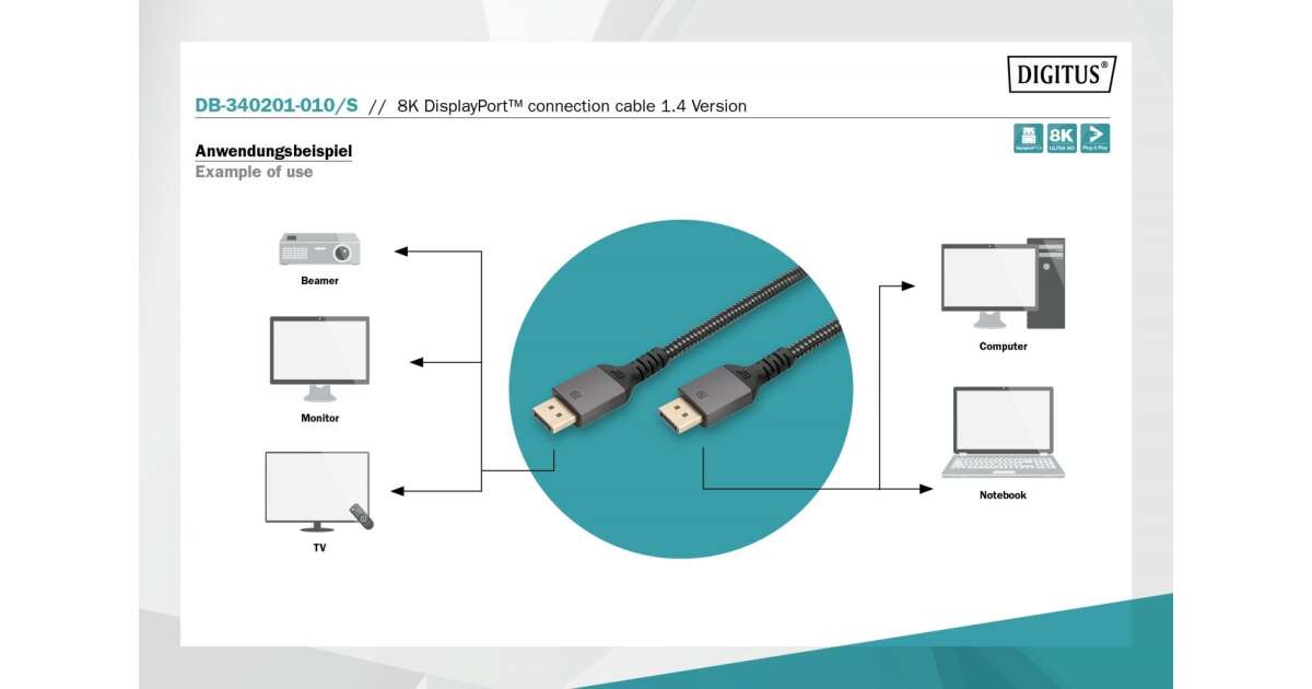 DIGITUS DB-340201-010-S 1m /s1x DisplayPort 1x DisplayPort opinii