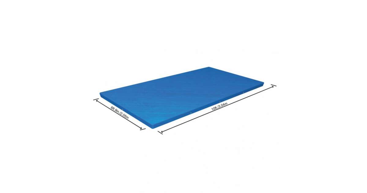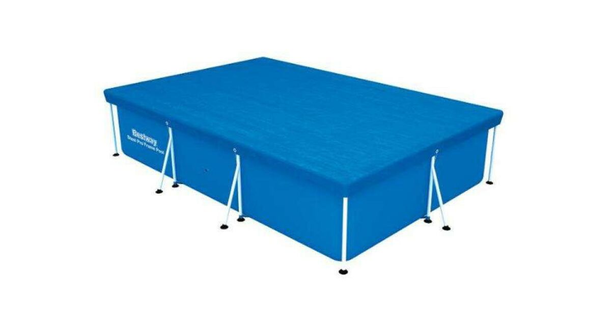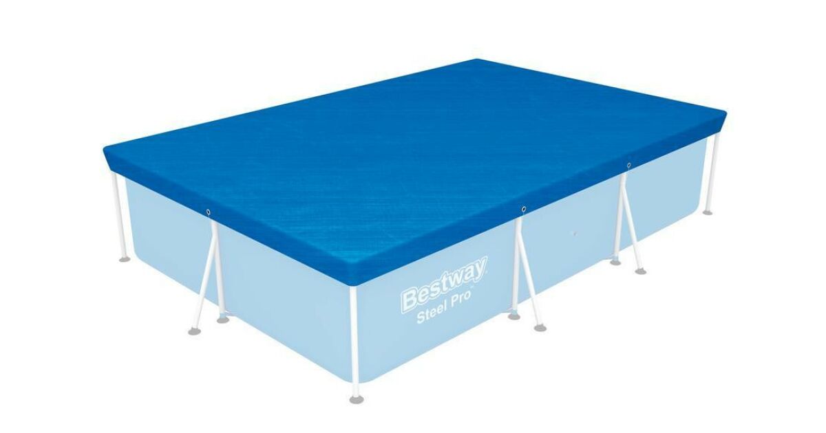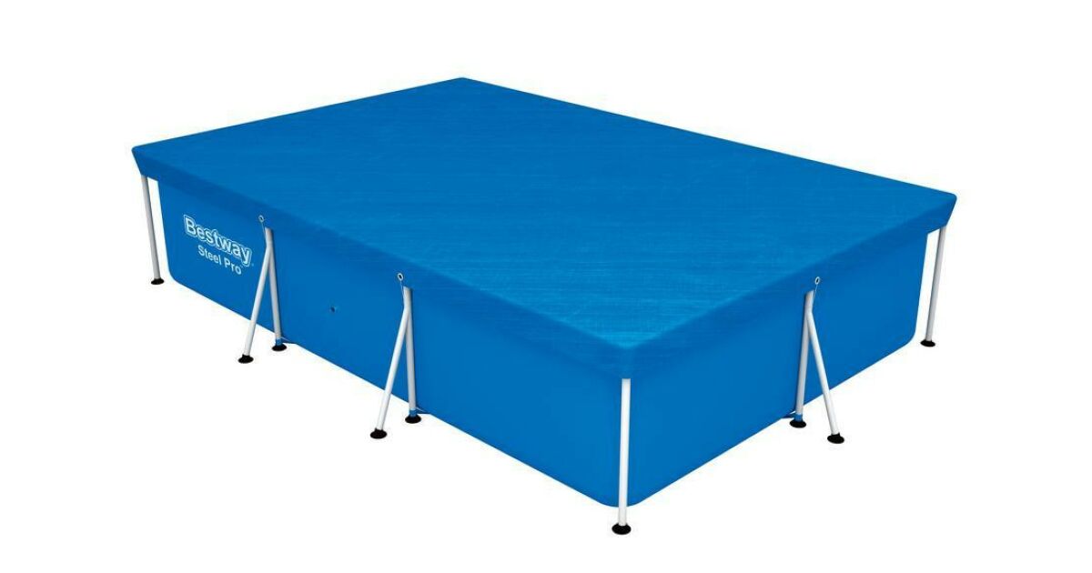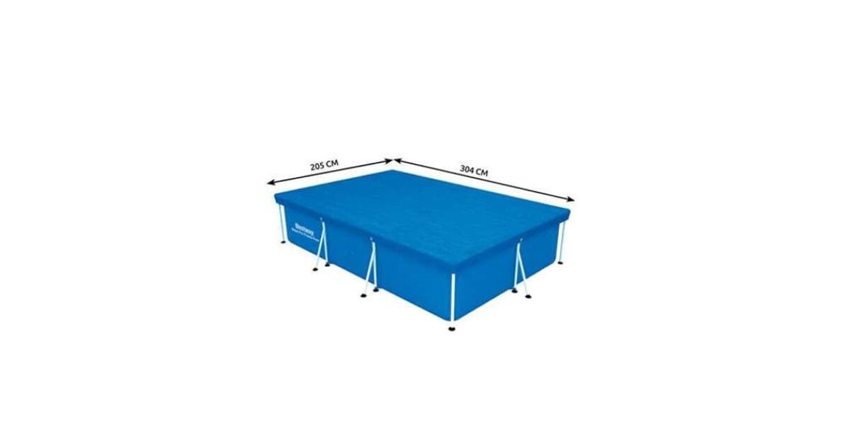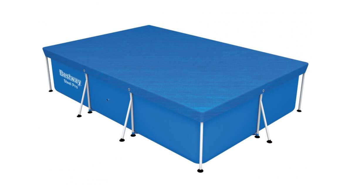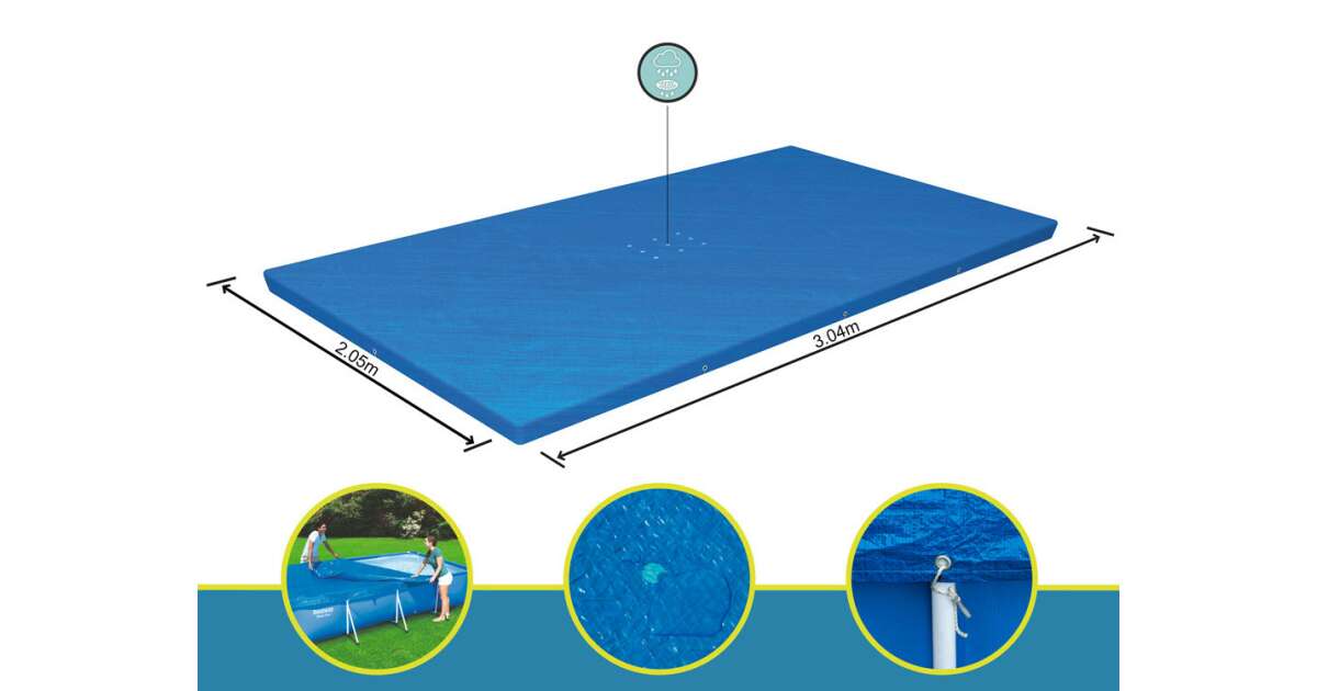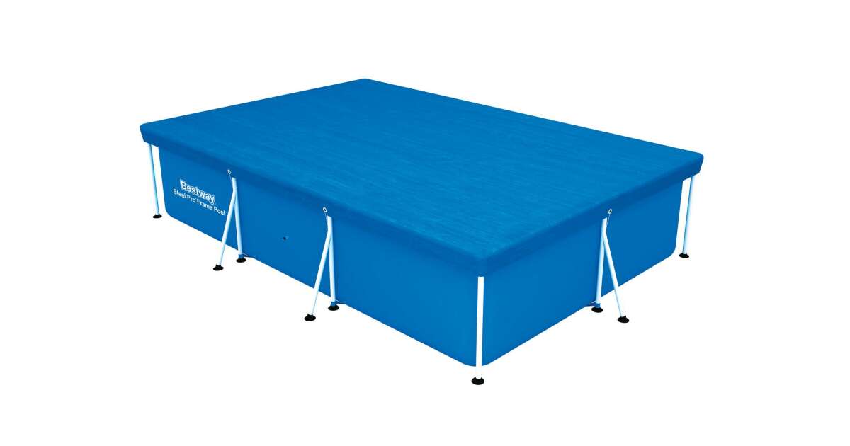 Prelata de protectie pentru piscina Bestway, 304x205 cm, material polietilena, include snur de prindere si orificii de drenaj ce previn acumularea de apa, compatibila cu piscine Steel Pro, albastru Descriere