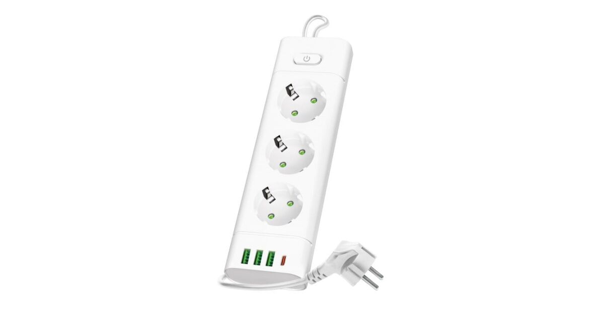 Ai nevoie de mai mult decât un simplu prelungitor? Prelungitorul Kobi nu are doar 3 prize standard, ci și 3 porturi USB-A și 1 port USB-C, astfel încât poți încărca dispozitivele și utiliza echipamentele electrice în același timp. Iar cablul de 3 metri oferă flexibilitate.