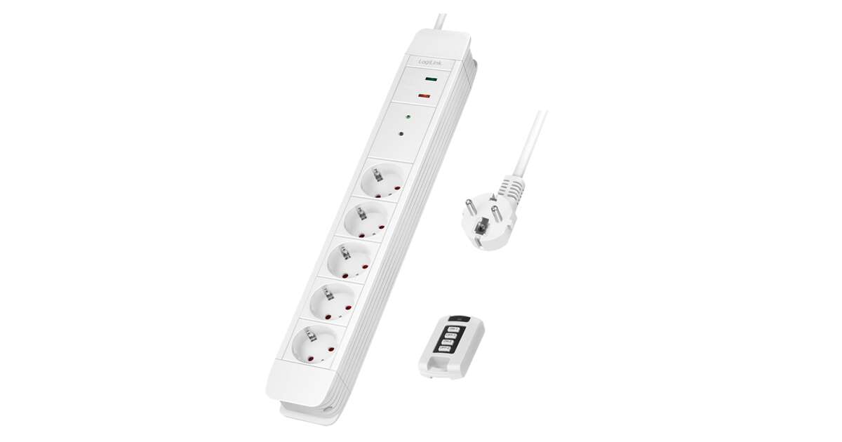 Logilink Socket 5 + telecomandă 2, 5x CEE 7/3, 1,5 m, alb (LPS402) Descriere