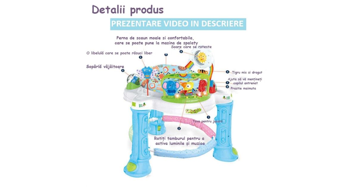 Centru de activitati si Premergator pentru copii WePro Store, rotatie 360, Sunete, Lumini, Accesorii atractive, 6 luni + Descriere