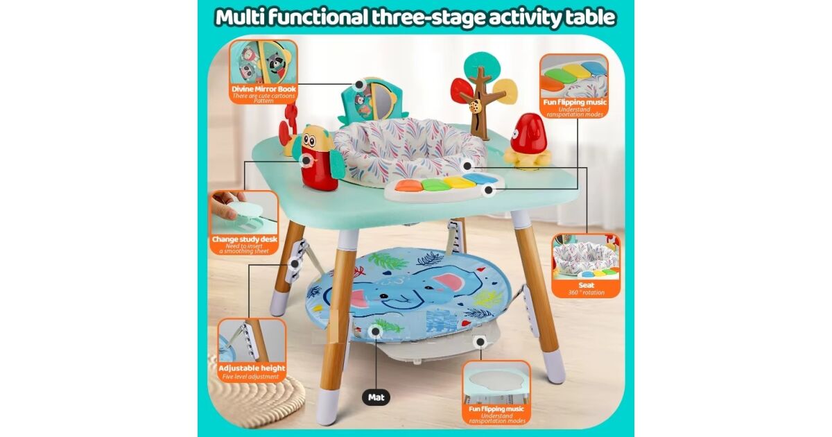 - Design 4 în 1: Combină funcțiile de săritor pentru bebeluși, centru interactiv, masă de joacă și masă multifuncțională. 🎉