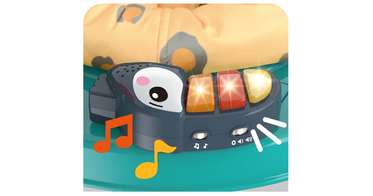 - Scaun rotativ la 360°: Bebelușul se poate roti liber și poate explora mediul înconjurător.
