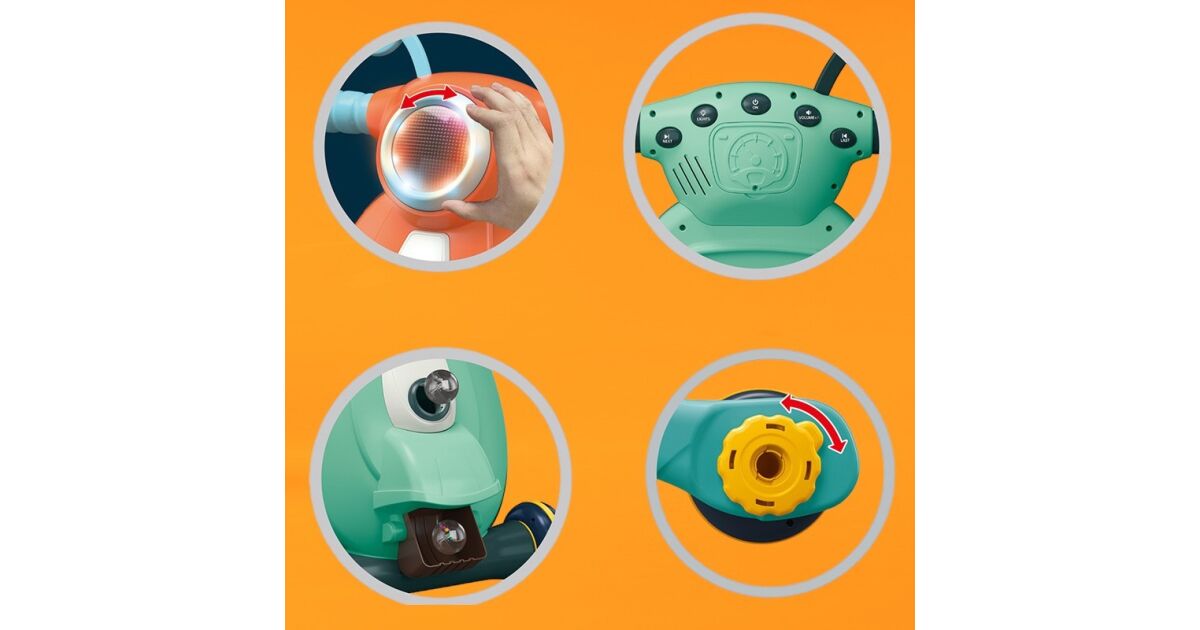 Efectele sonore și luminoase nu sunt doar distractive, ci ajută și la captarea atenției bebelușului și la dezvoltarea abilităților motorii. Designul stabil asigură siguranța, în timp ce dimensiunea compactă îți permite să o iei cu tine oriunde.
