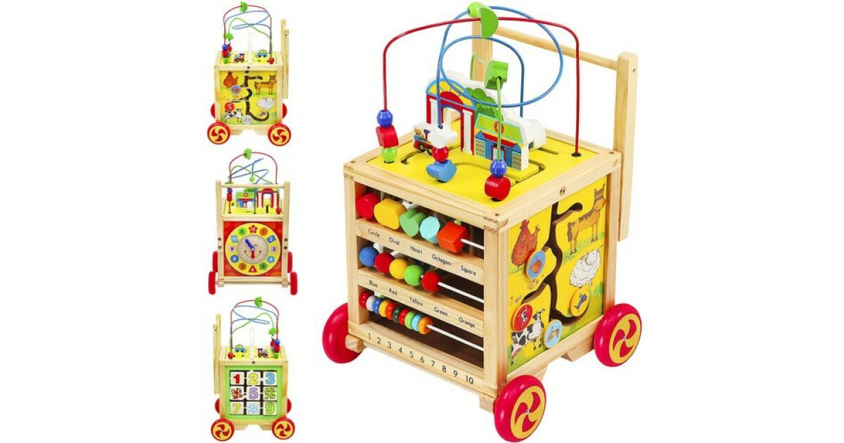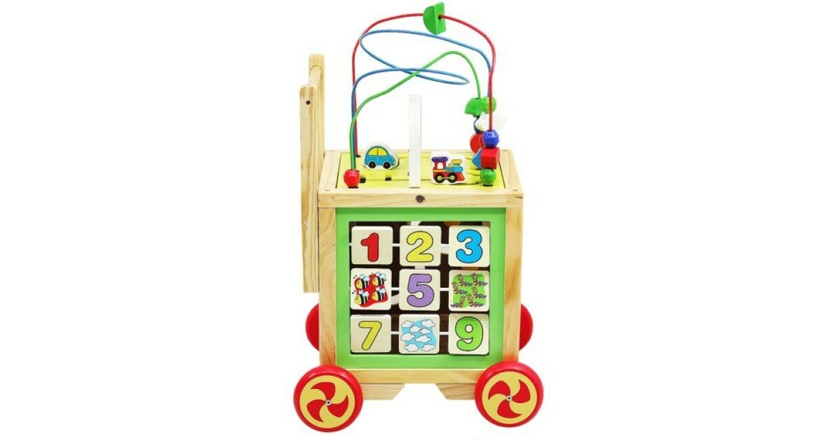 -Plimbare educativă din lemn pentru copii, cub interactiv rulabil + etichetă terminală 100x150 Descriere