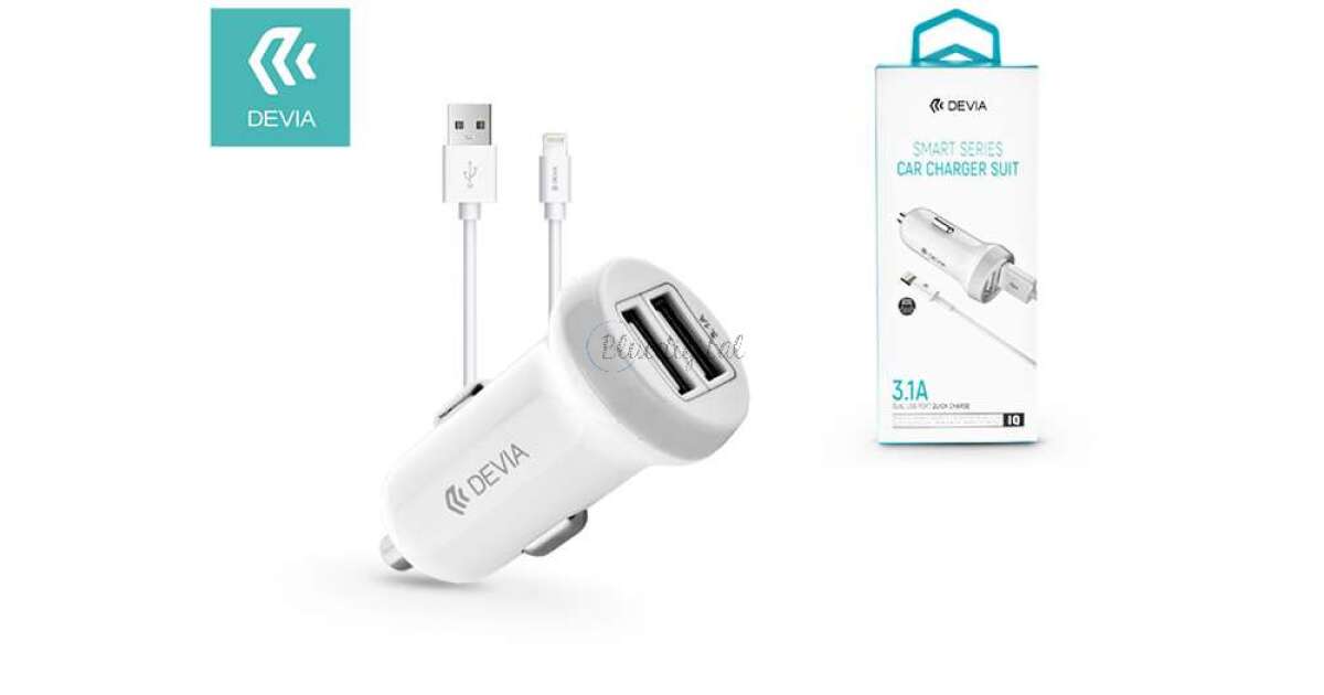 Devia szivargyújtós töltő adapter 2xUSB bemenettel + USB - Lightning kábel - 5V/3,1A - Devia Smart Series Dual Car Charger Suit - fehér (ST326905)
