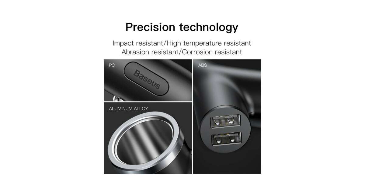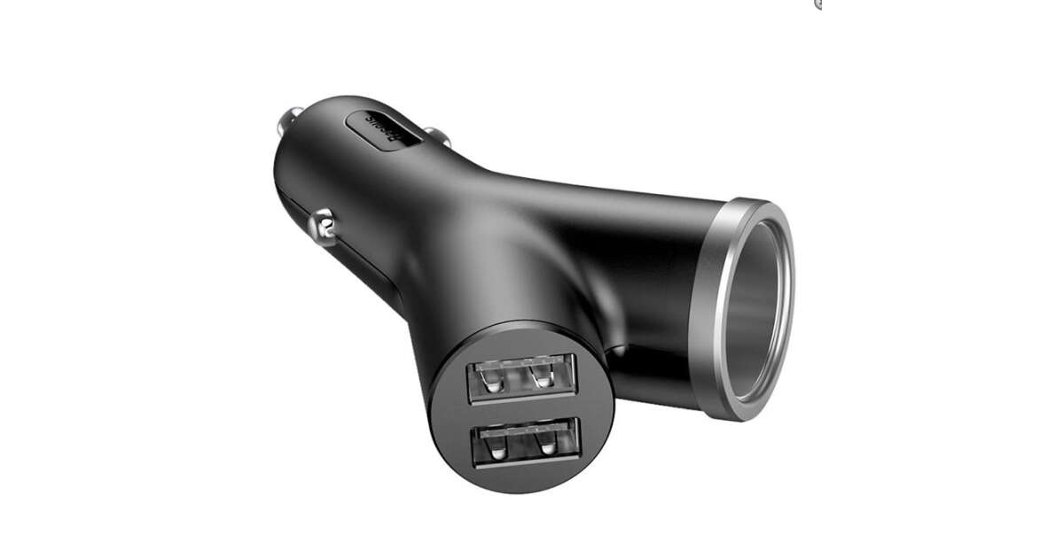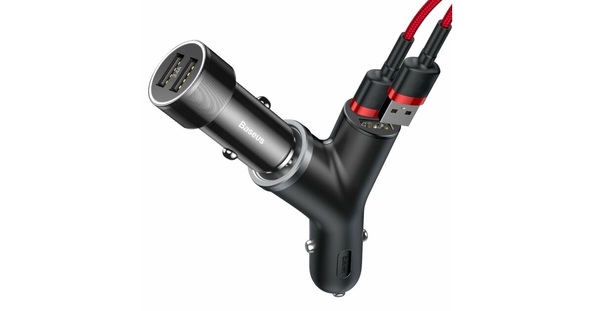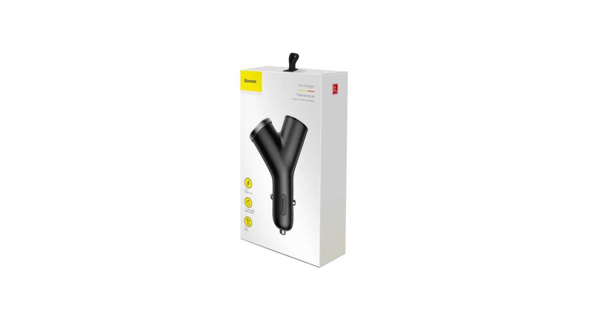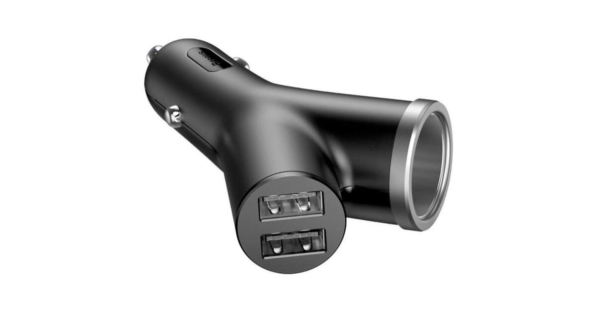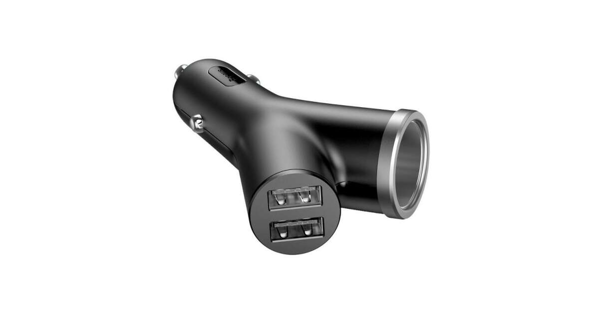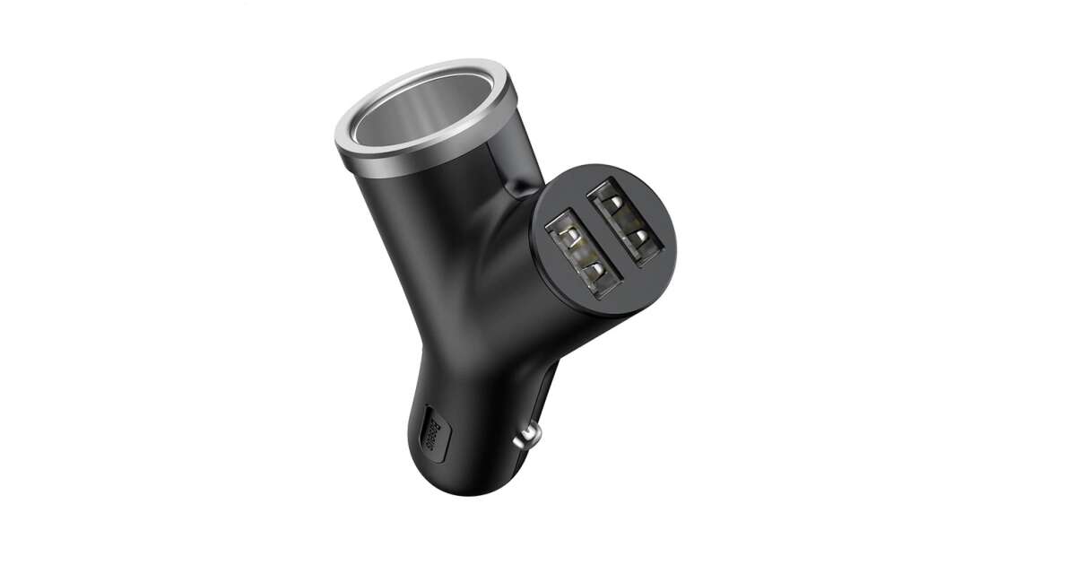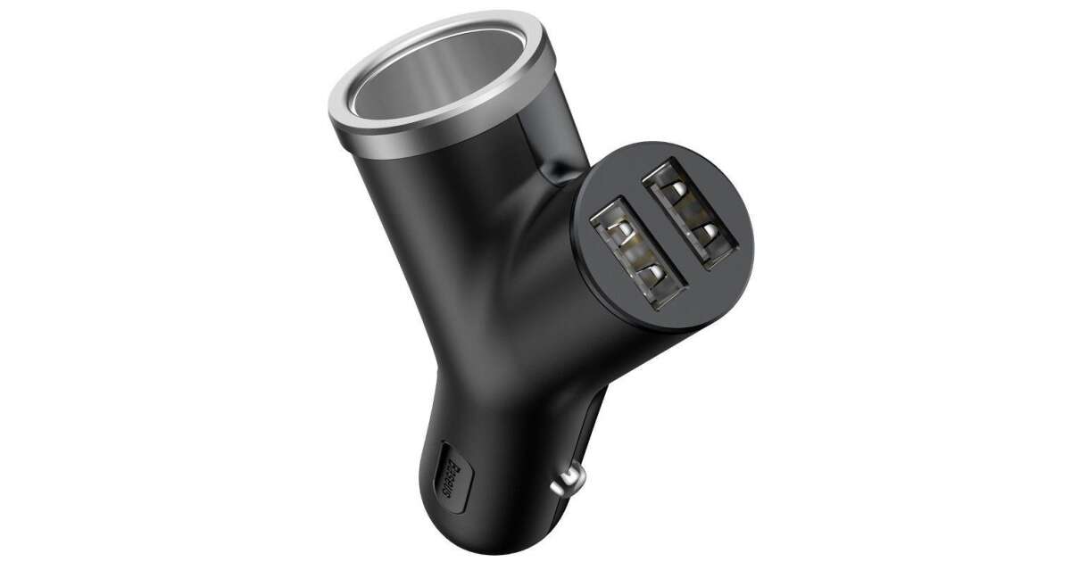 Incarcator auto de tip Y Baseus, 2x USB, port extins pentru bricheta, 3,4 A, negru (CCALL-YX01) Descriere