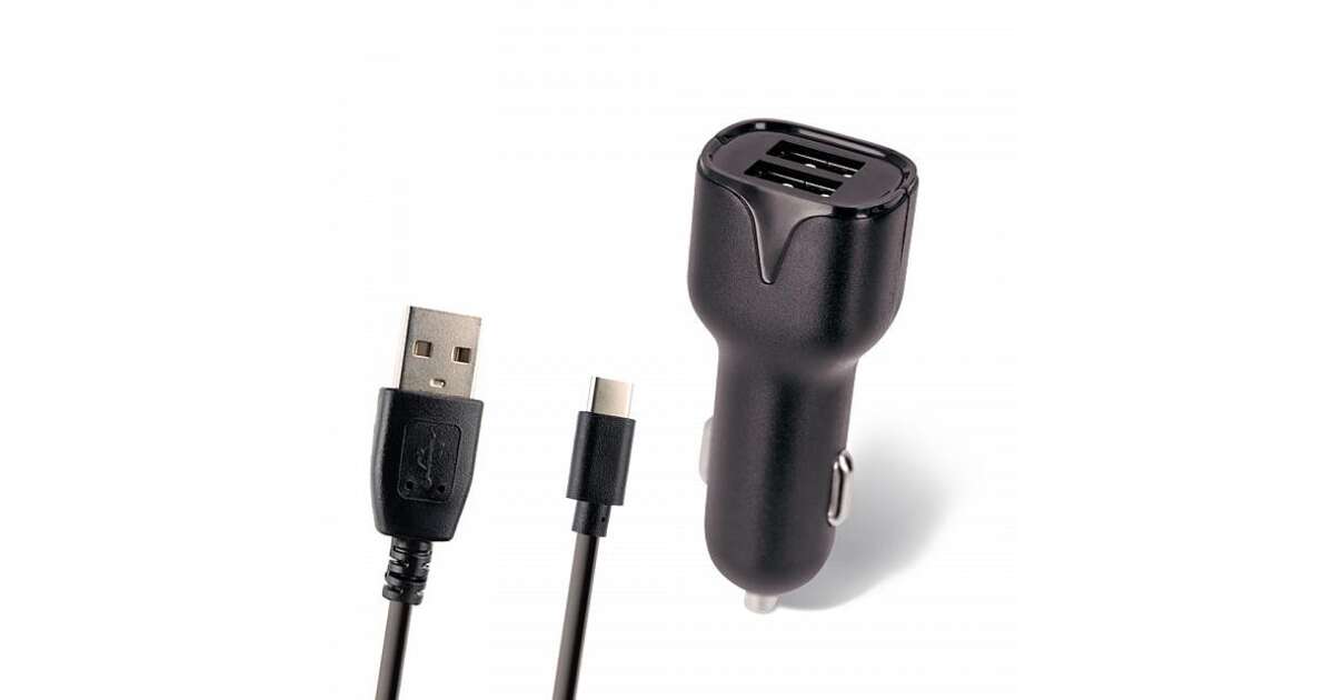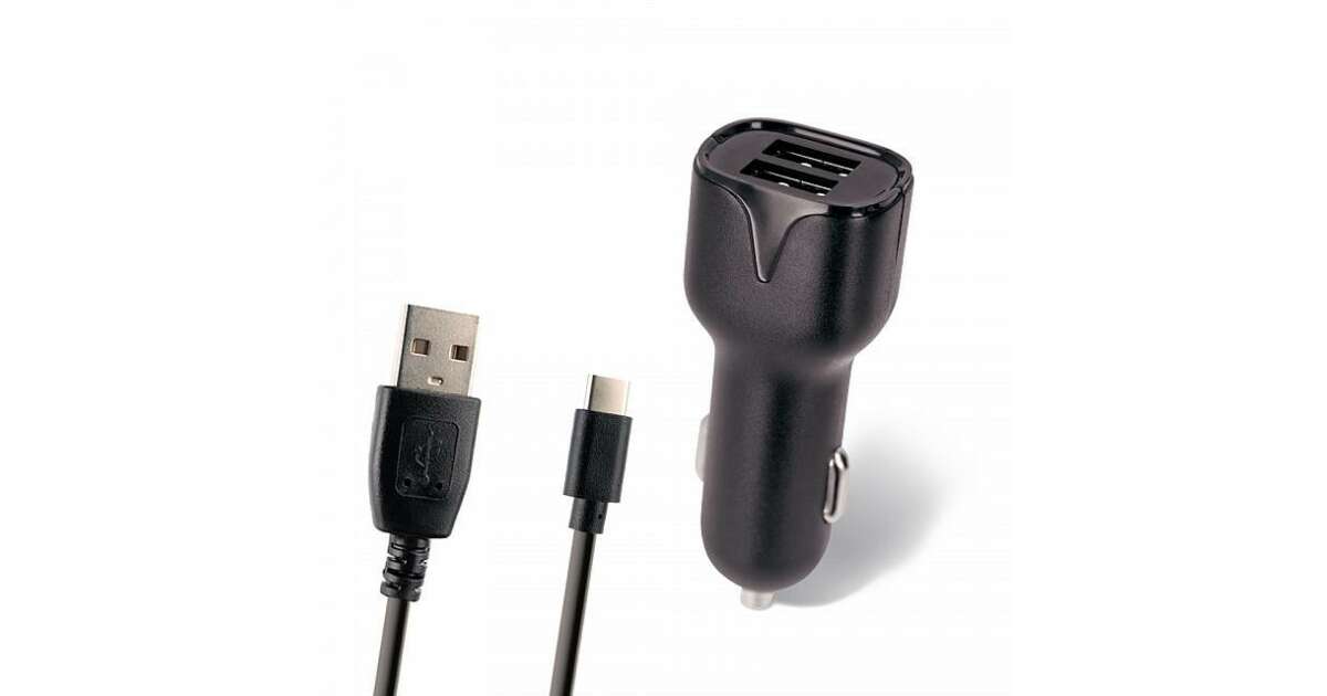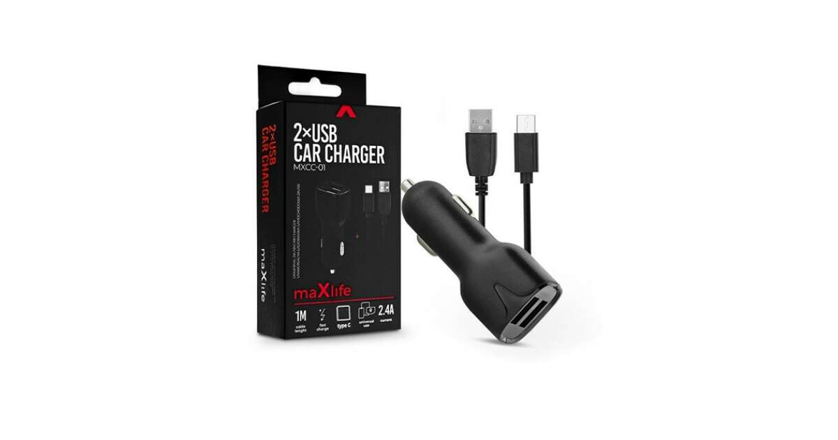 Incarcator auto Maxlife, MXCC-01, 2x USB 2.4A, cablu USB-C, Negru Descriere