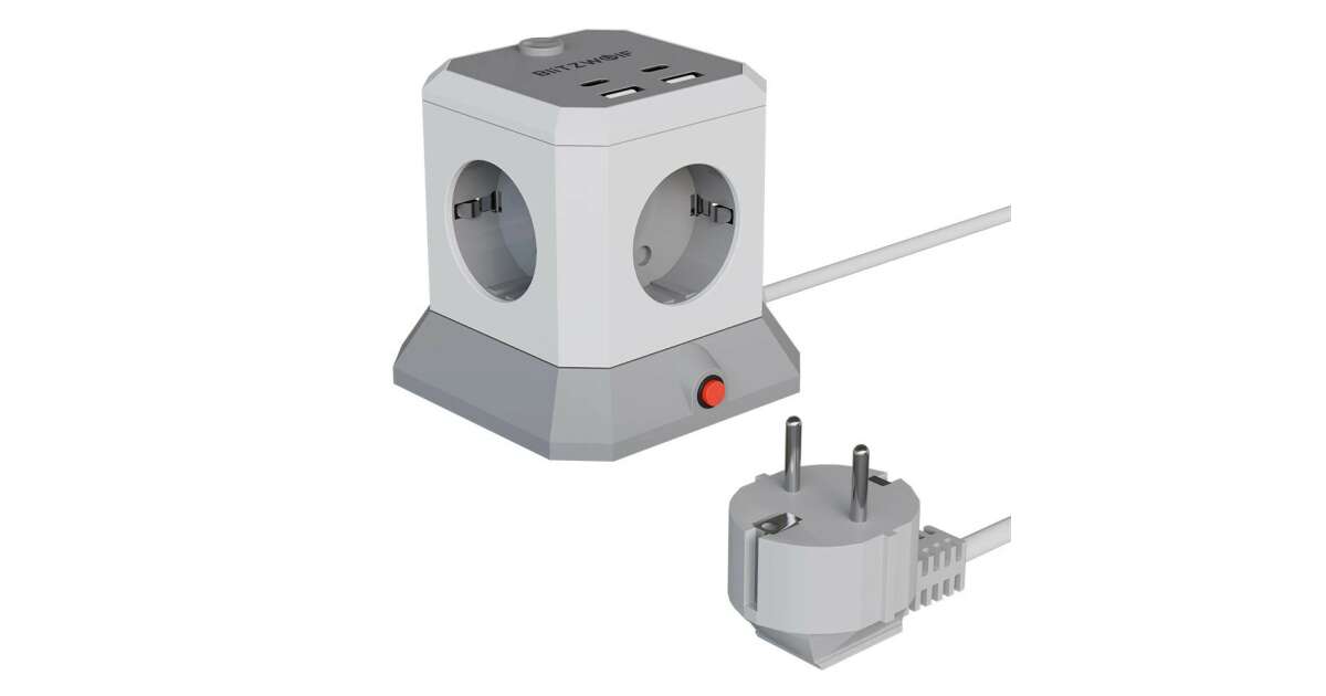 Pune-ți biroul în ordine cu acest încărcător și distribuitor de birou compact și versatil BlitzWolf® BW-EC1! Poți încărca mai multe dispozitive simultan cu cele 4 prize de 230V și cele 4 porturi USB (2x USB-A & 2x USB-C).