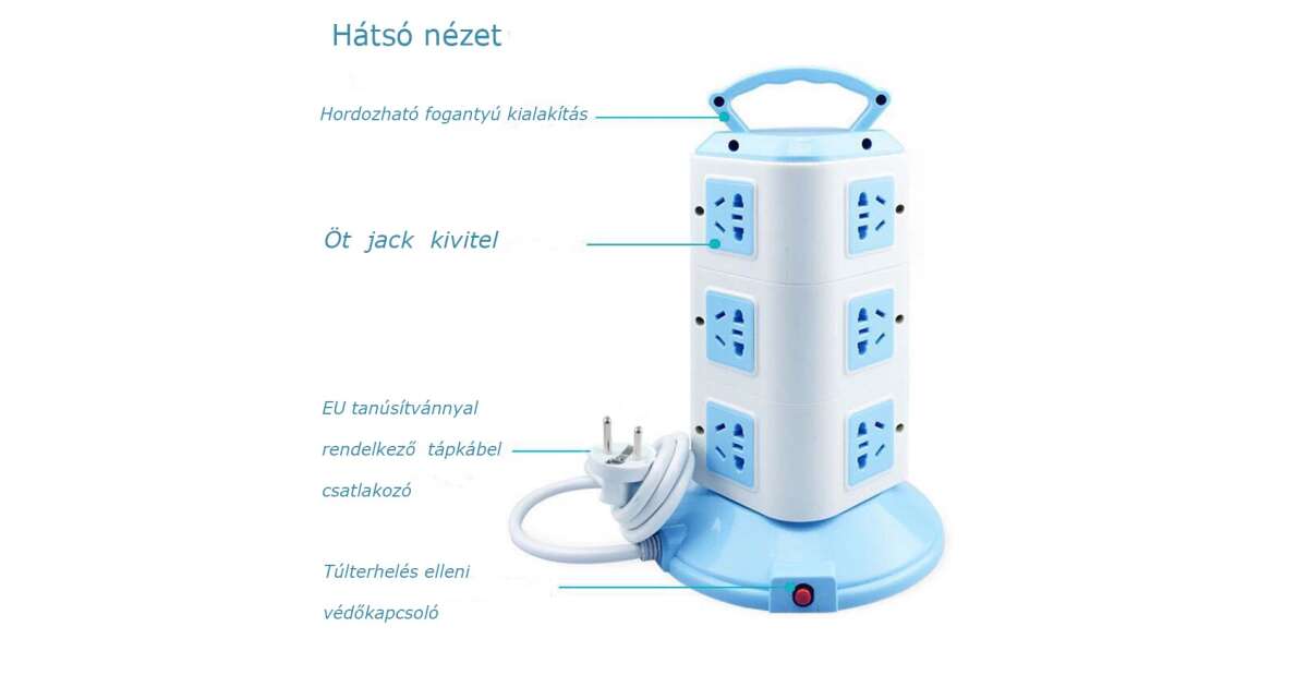 Dollcini, Cablu de prelungire vertical multifuncțional inteligent, 12 prize, 3 x USB, întrerupător de alimentare, protecție la supratensiune, 1,8 m, 100461, alb și albastru Descriere