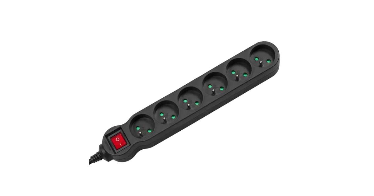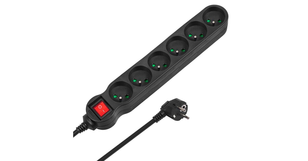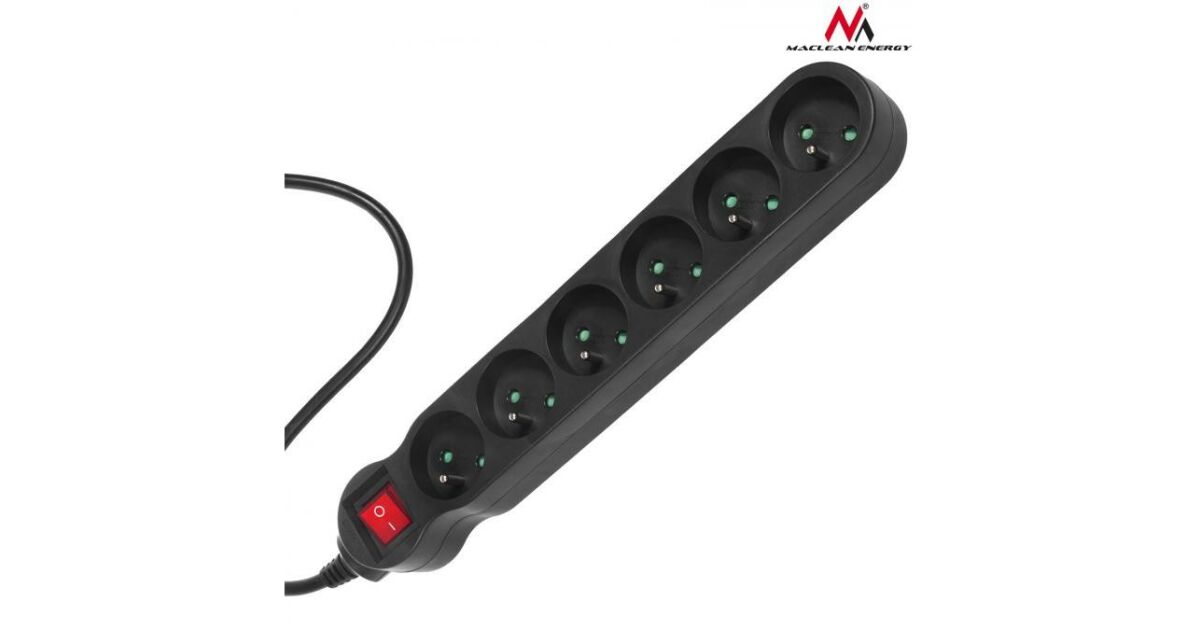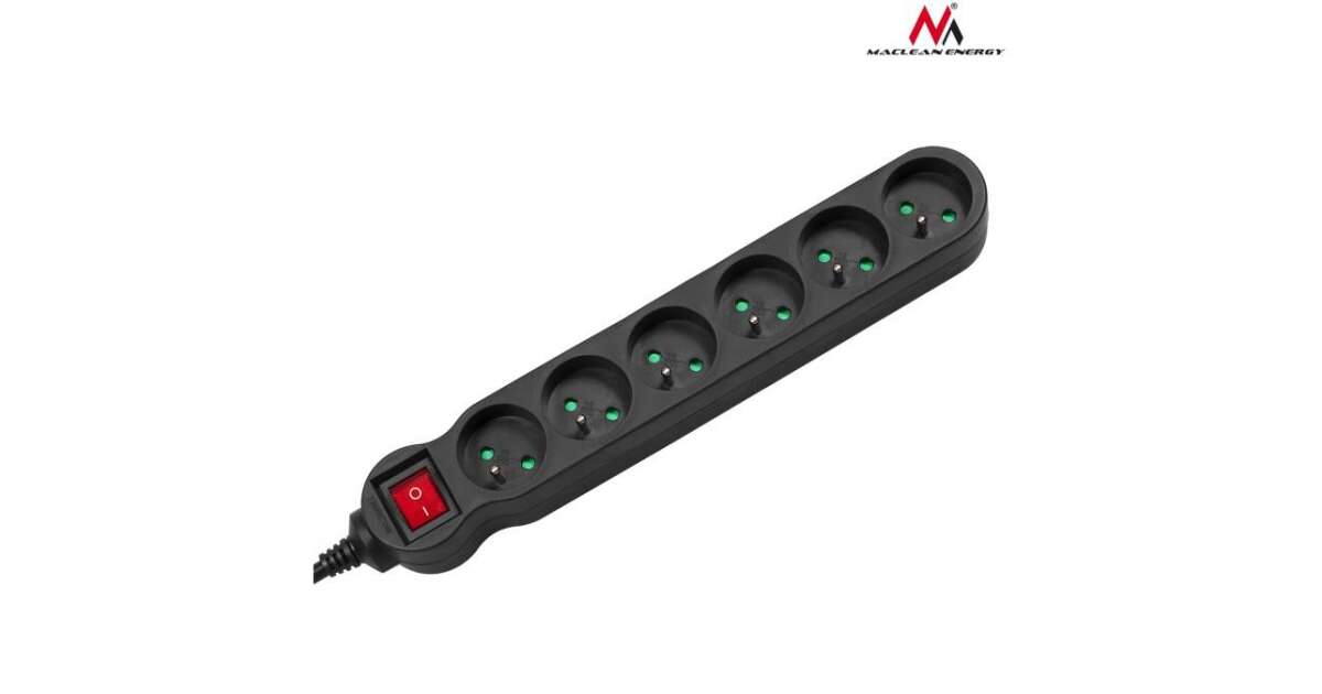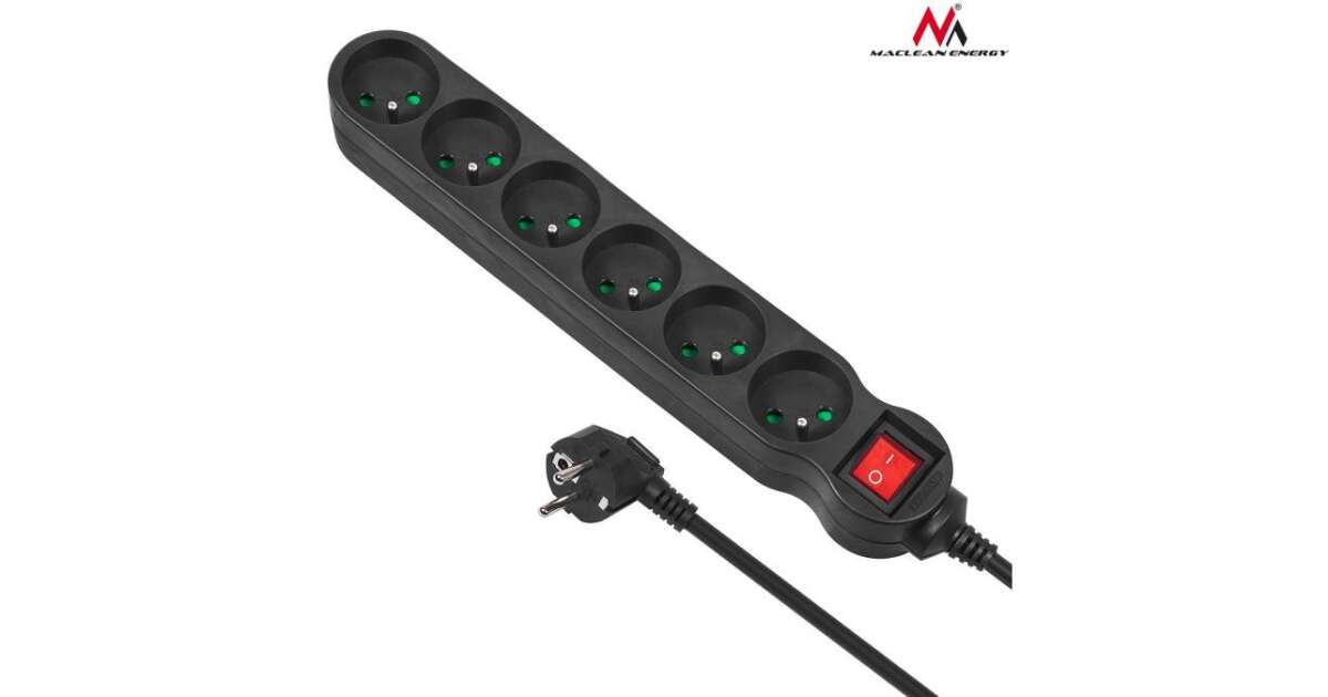 Prelungitoare Maclean, prelungitor cu 6 prize, cu comutator, negru, 2300 W, 3 m, MCE187 Descriere