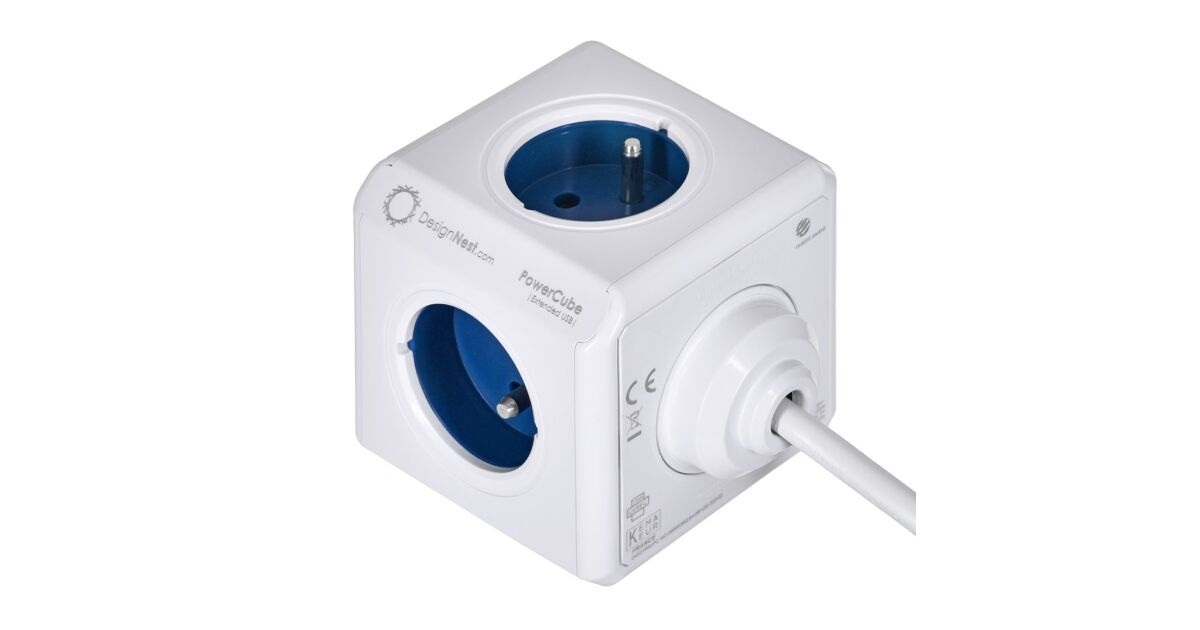 -Allocacoc PowerCube Extended 4 prize de alimentare cu 2 porturi USB - Albastru (2402BL/FREUPC) Descriere