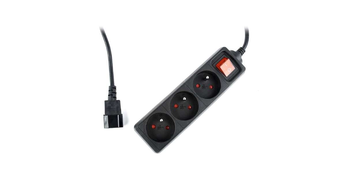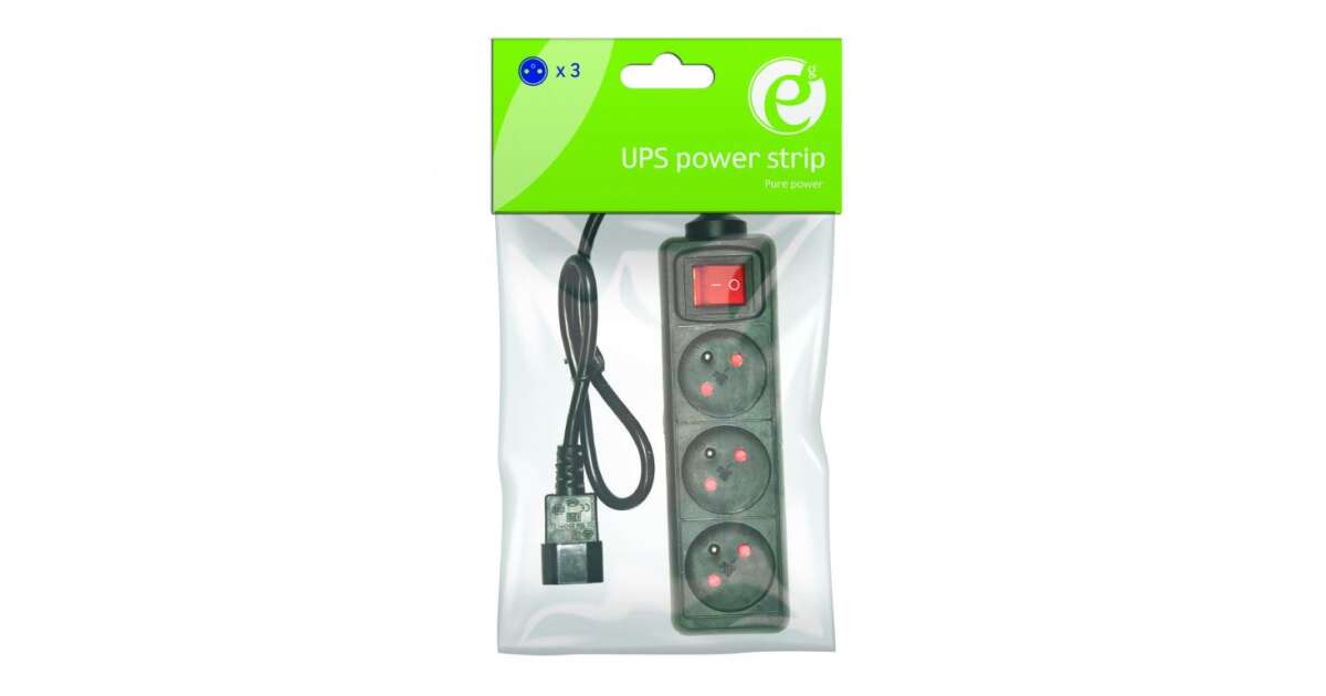 Prelungitor UPS cu 3 prize schuko , stecher IEC C13 (tata), cablu 60cm, intrerupator si protectie pentru copii (EG-PSU3F-01) (EG-PSU3F-01)