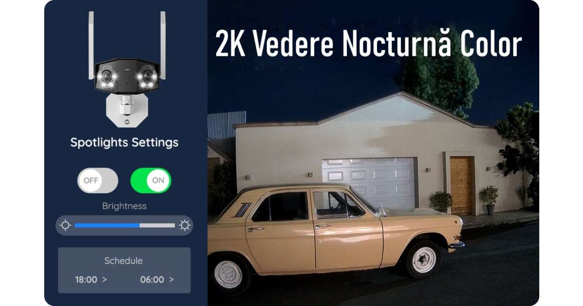 - Vedere nocturnă excelentă: Poți alege între vizionare nocturnă color sau alb-negru. 🌃