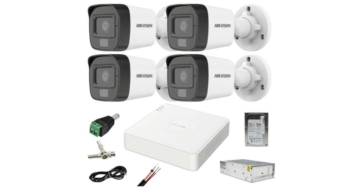 Sistem CCTV: Hikvision, 4 camere: 2MP, Dual Light, WL, 20m, IR, 25m, DVR, 4MP, AcuSense, cu accesorii incluse, 500GB HDD