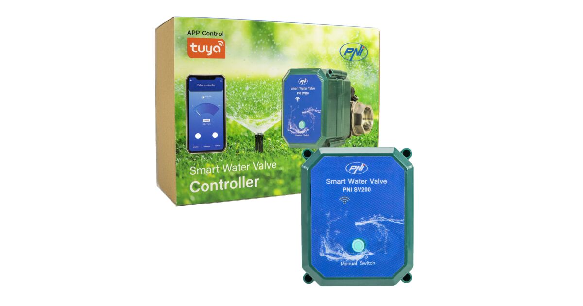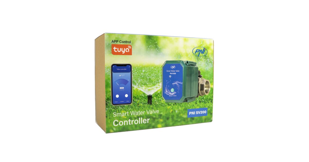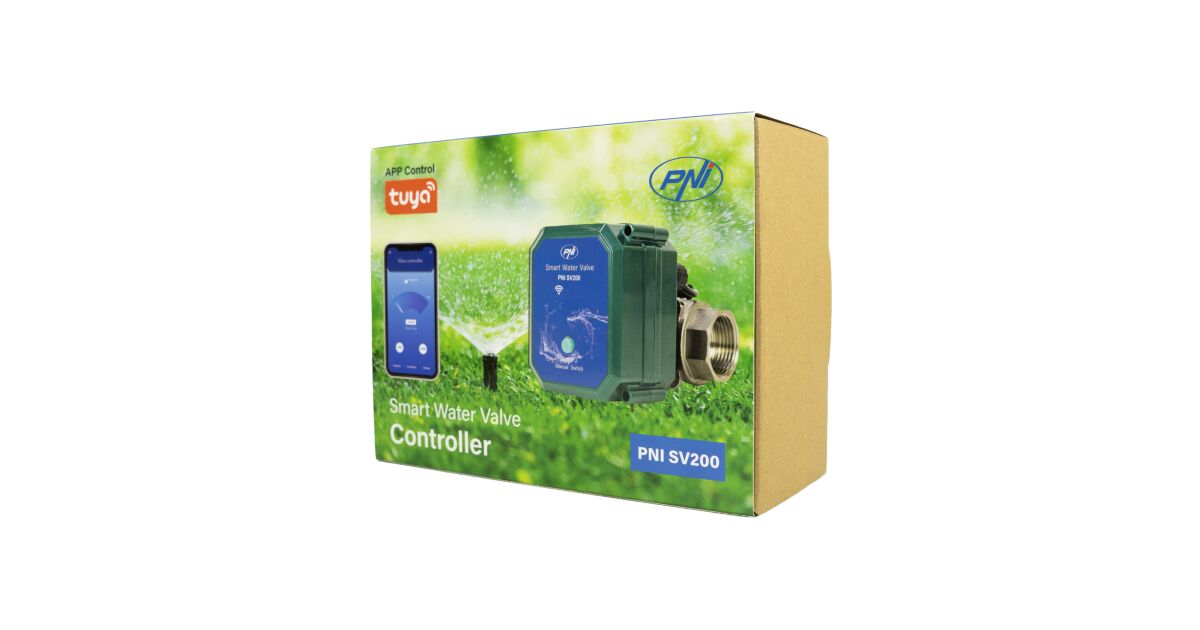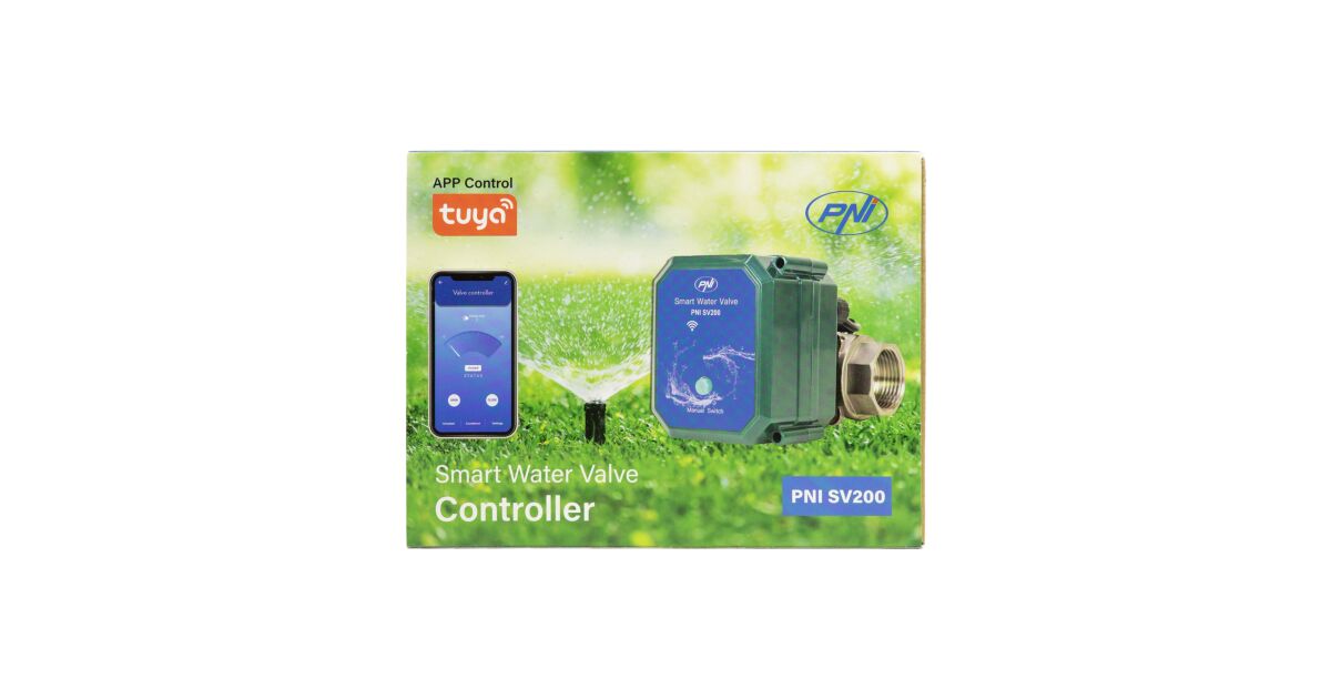 Valva inteligenta pentru apa PNI SV200, conectivitate Wi-Fi, IP65, DN20, 3/4 aplicatie Tuya, compatibil cu Amazon Alexa si Google Home