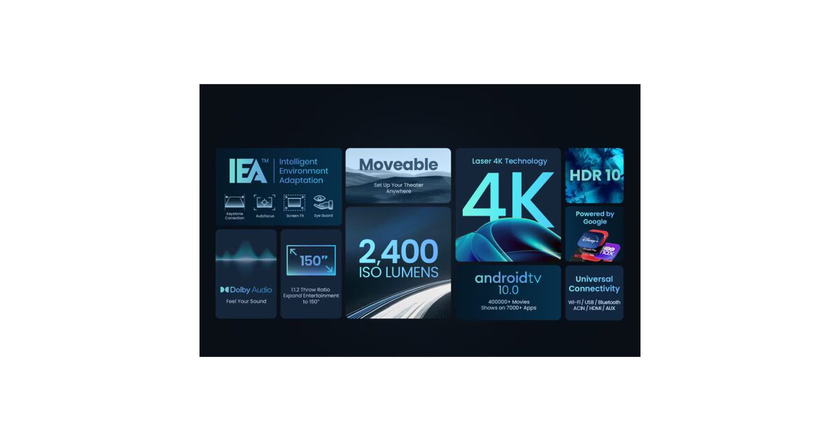- Adaptare Inteligentă la Mediu (IEA): Proiectorul se adaptează automat la mediul înconjurător, așa că configurarea e floare la ureche. ⚙️