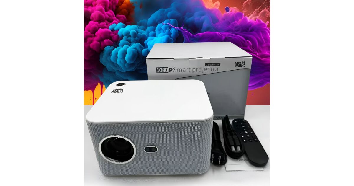 Videoproiector Smart Portabil, Linomag®, 4K Full HD 1080P, 350 ANSI, Autofocus, Android 11, WiFi, Bluetooth, Difuzor Integrat, Telecomandă, Alb/Gri Perlat Descriere