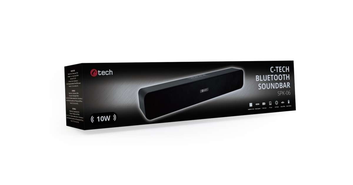 C-TECH SPK-06 10 W RMS, Bluetooth, FM Soundbar negru Descriere