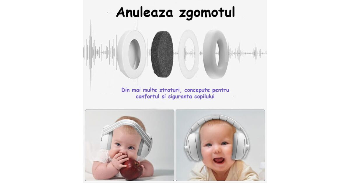 Urechile bebelușilor sunt foarte sensibile, așa că este important să le protejăm de zgomotele puternice. Aceste căști ajută copilul dumneavoastră să doarmă liniștit sau să se bucure de călătorie fără a fi deranjat de zgomote. Designul moale și confortabil asigură faptul că bebelușul poate purta confortabil căștile, chiar și pentru perioade mai lungi de timp.