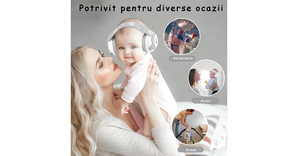 Protejează auzul bebelușului tău! Urechile bebelușilor sunt foarte sensibile, așa că este important să le protejezi de zgomotele dăunătoare. Aceste căști ajută bebelușul să se simtă liniștit și în siguranță, oriunde s-ar afla.