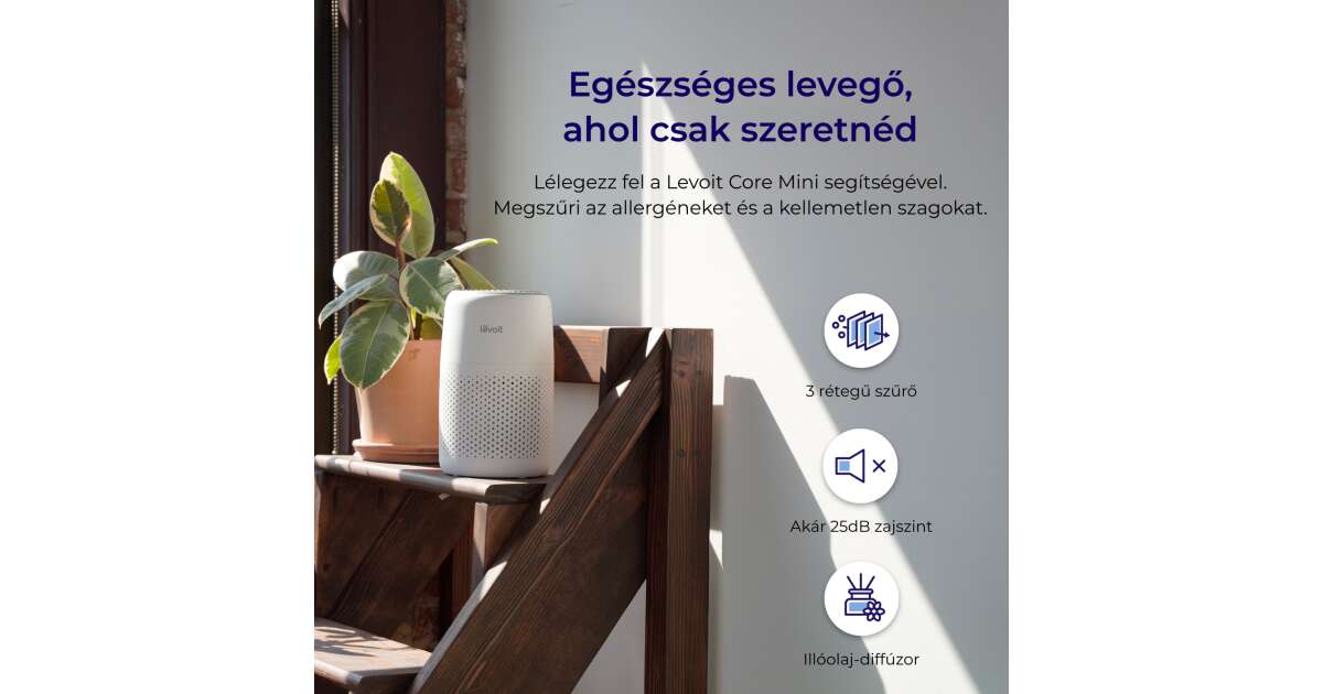 Transformă-ți casa într-o oază de aer proaspăt și un mediu sănătos cu Levoit Core Mini. Acest purificator de aer compact este echipat cu filtrare în 3 trepte și aromoterapie, ideal pentru încăperi de până la 17 metri pătrați, cum ar fi un dormitor, bucătărie sau birou de acasă.