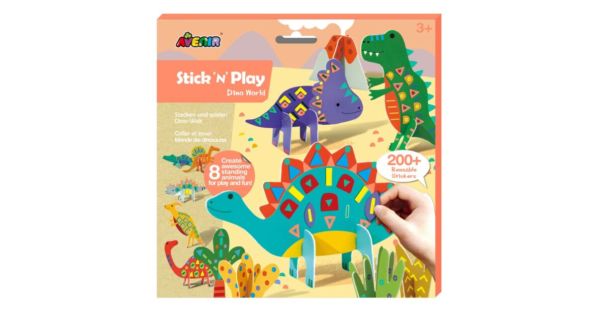 Joc creativ Stick N Play cu scene 3D si stickere repozitionabile - Lumea Dinozaurilor Descriere