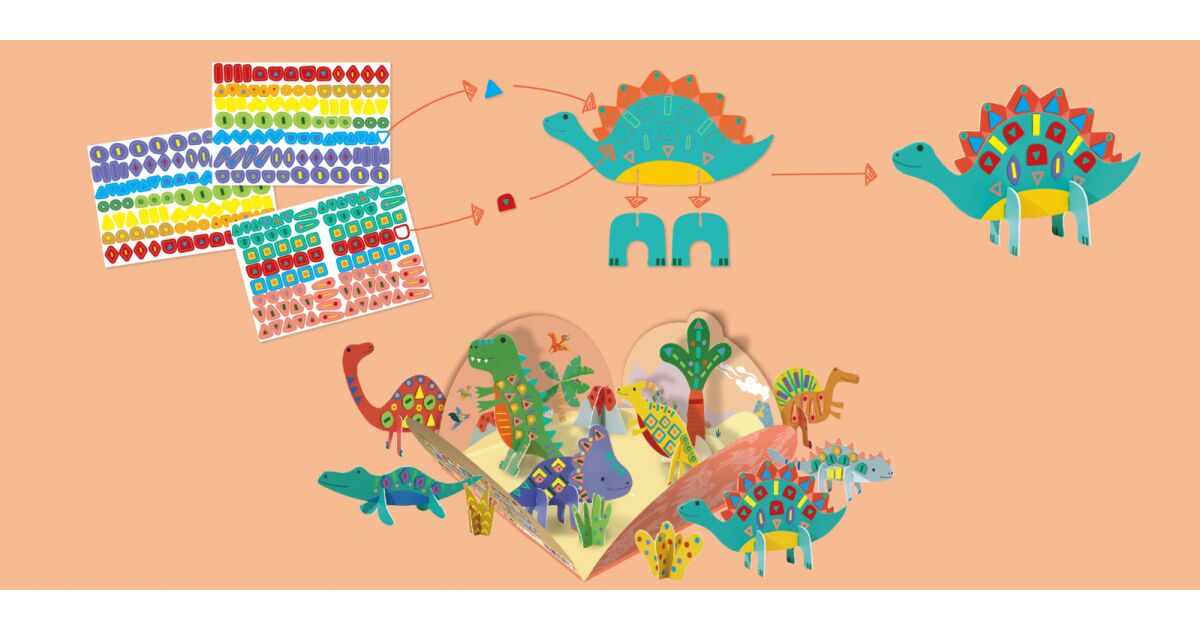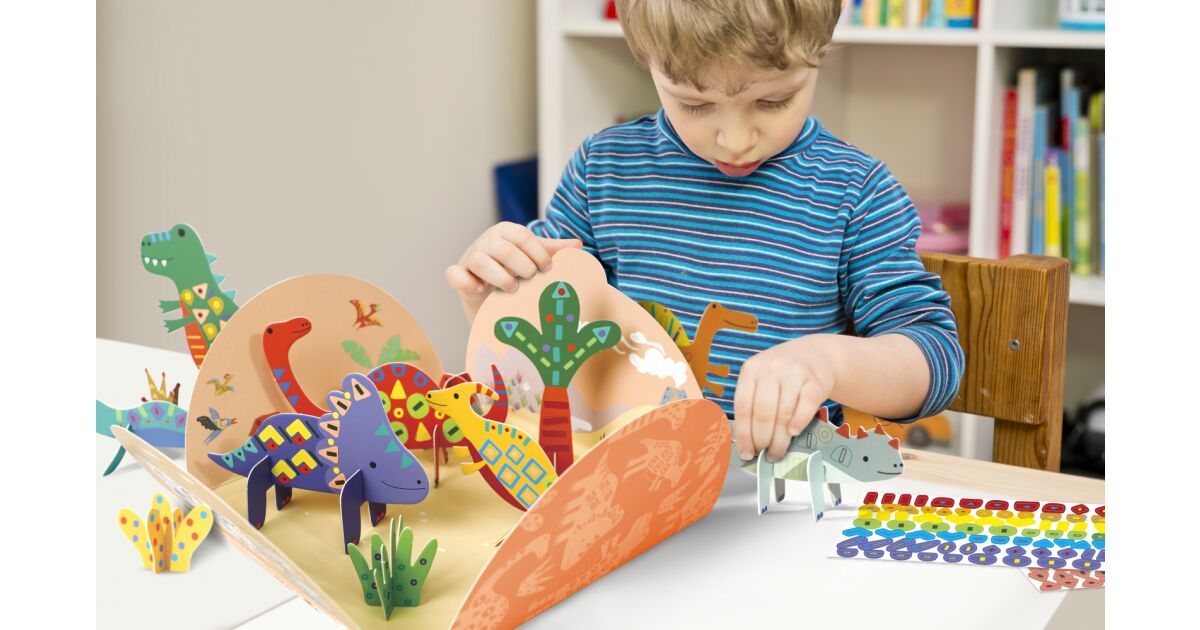 Acest set distractiv oferă ore întregi de joacă creativă pentru copii! Cu peste 130 de abțibilduri normale și peste 70 de abțibilduri fluorescente, plus foi perforate din care pot crea figurine adorabile de dinozauri. Copiii pot crea liber, își pot dezvolta creativitatea și abilitățile motorii fine.