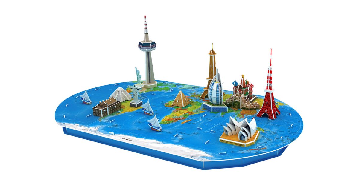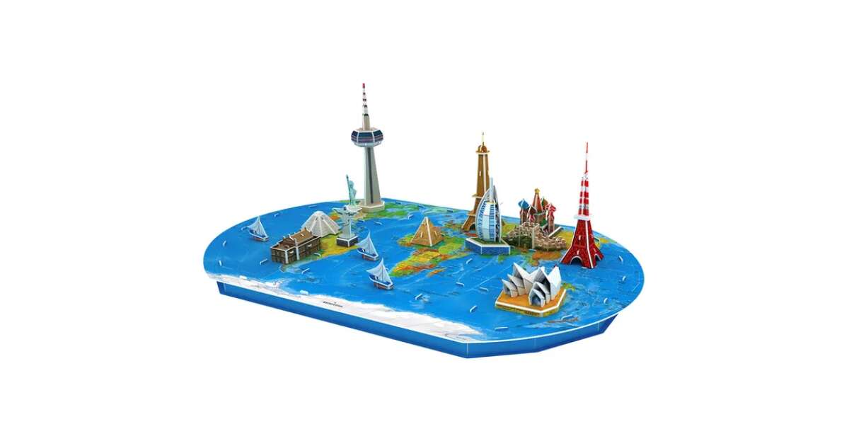 Acest puzzle 3D uimitor prezintă Pământul cu cele mai faimoase clădiri din lume! Este o modalitate excelentă de a învăța geografie, indiferent dacă copilul tău este pasionat de geografie sau nu. Poate învăța jucăuș, dezvoltându-și în același timp gândirea spațială și abilitățile logice.