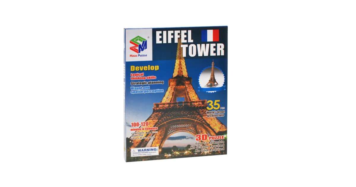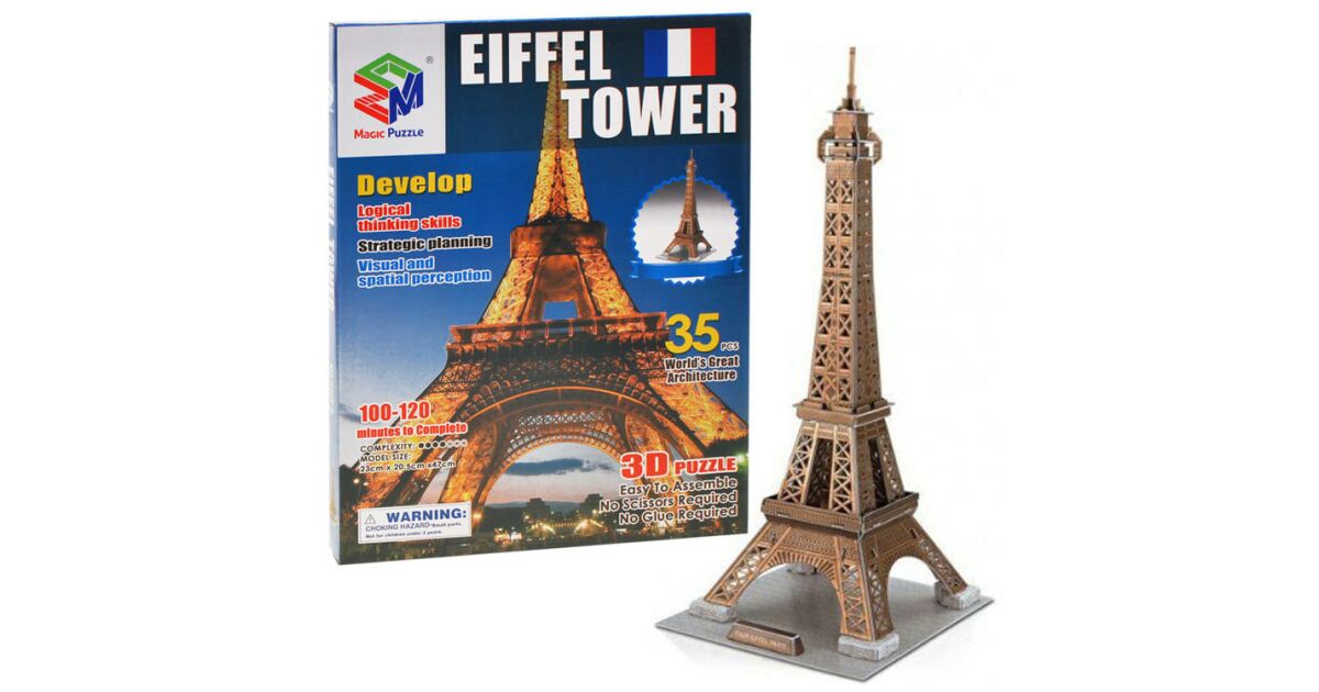 Acest puzzle 3D de 35 de piese e o provocare fantastică și o distracție pe cinste pentru toate vârstele. Cu acest model detaliat, poți construi cu ușurință Turnul Eiffel din Paris, fără să ai nevoie de foarfecă sau lipici. Setul include și instrucțiuni de asamblare, ca să poți urmări pașii cu ușurință.