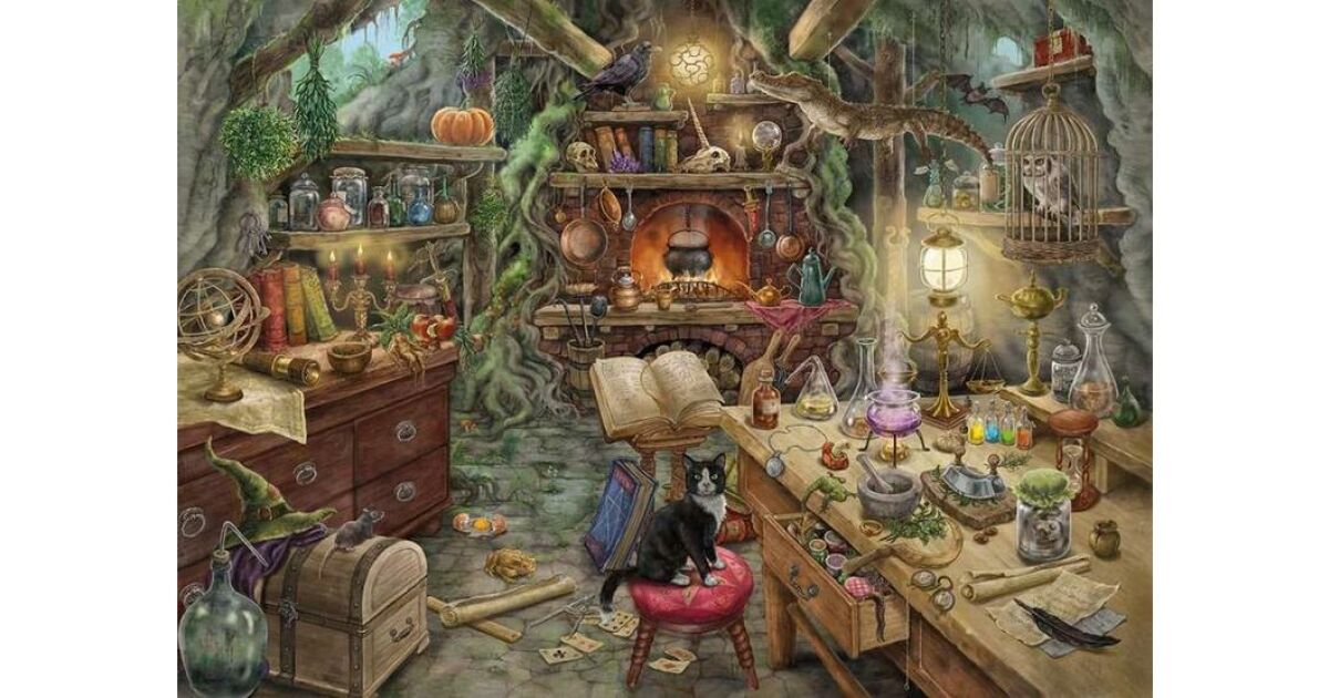 - Asamblează puzzle-ul frumos cu bucătăria vrăjitoarei.