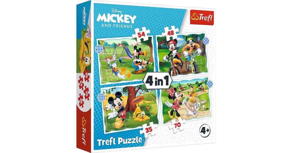 Acest joc de puzzle Trefl conține 4 puzzle-uri diferite, decorate cu Mickey Mouse și prietenii lui, toate într-o singură cutie! Ideal pentru cei mici care adoră personajele Disney și puzzle-urile. Datorită numărului diferit de piese, jocul oferă distracție perfectă pentru diferite grupe de vârstă.