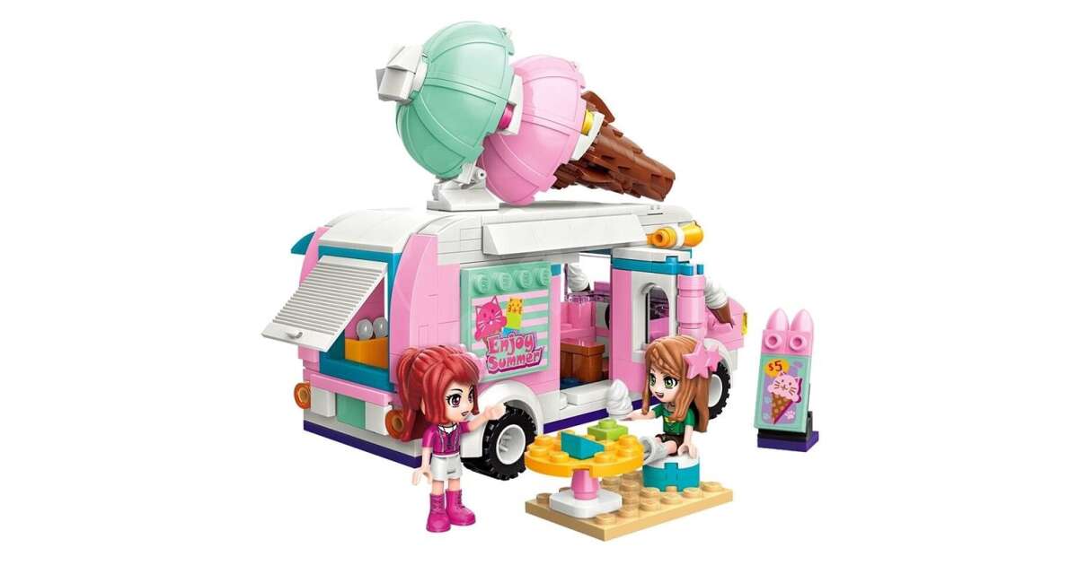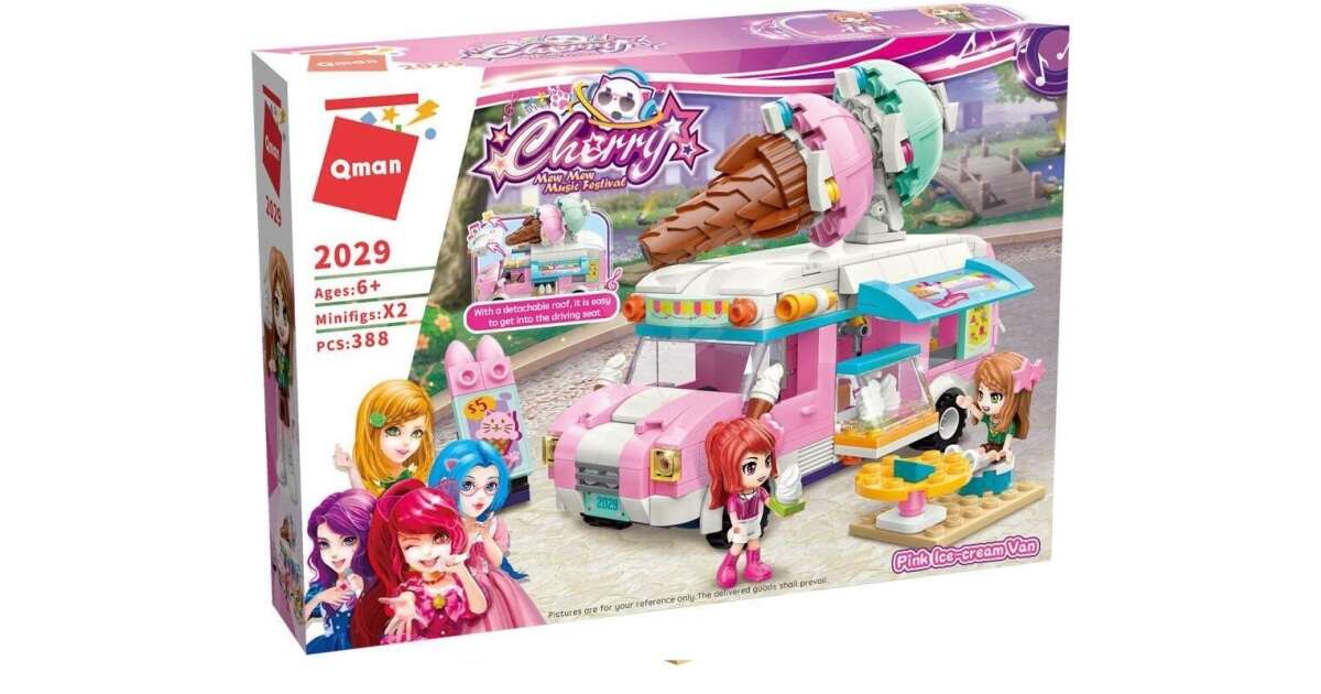 QMAN® 2029 - Jucărie de construcție a mașinii Cherry Mew Pink Ice Cream - 100% compatibilă cu toate celelalte mărci populare Descriere