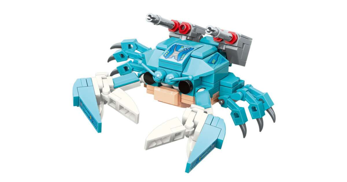 - Un set complet de jucării de construit crab transformabil QMAN.